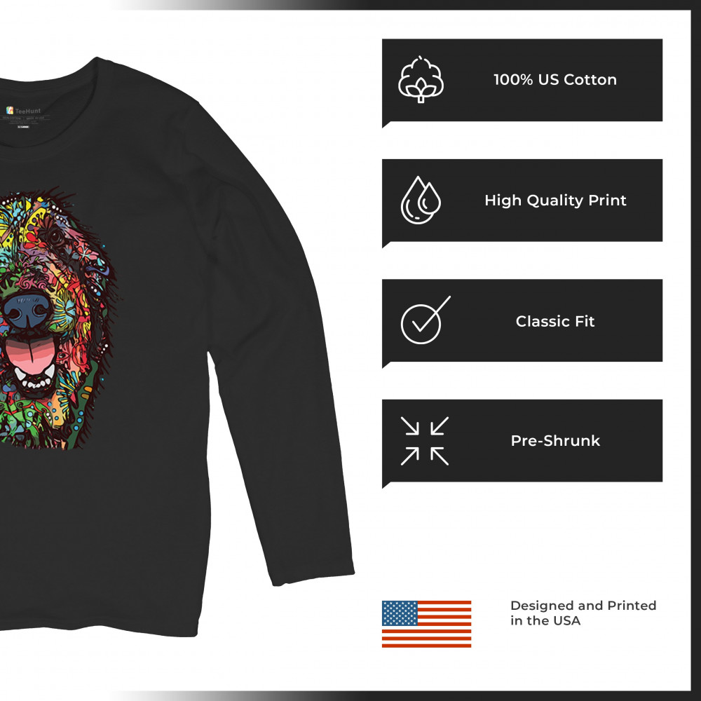 FUNNY FEELING HAPPY DOG FACE dean russo happy dog face women's long sleeve t-shirt funny feeling pet black