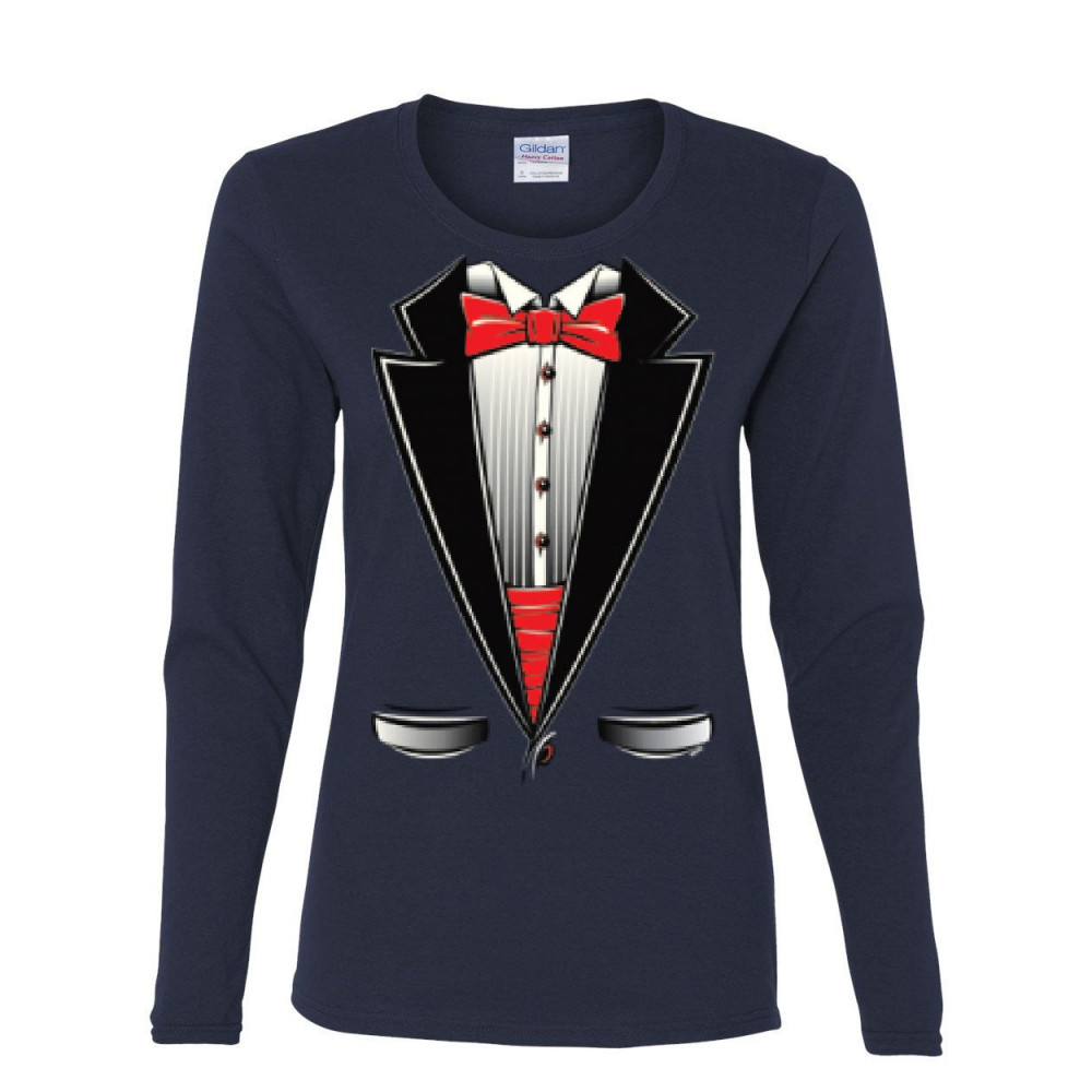FUNNY TUXEDO BOW TIE long sleeve t-shirt tux wedding party navy blue