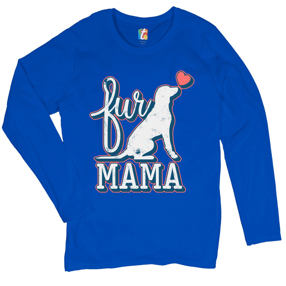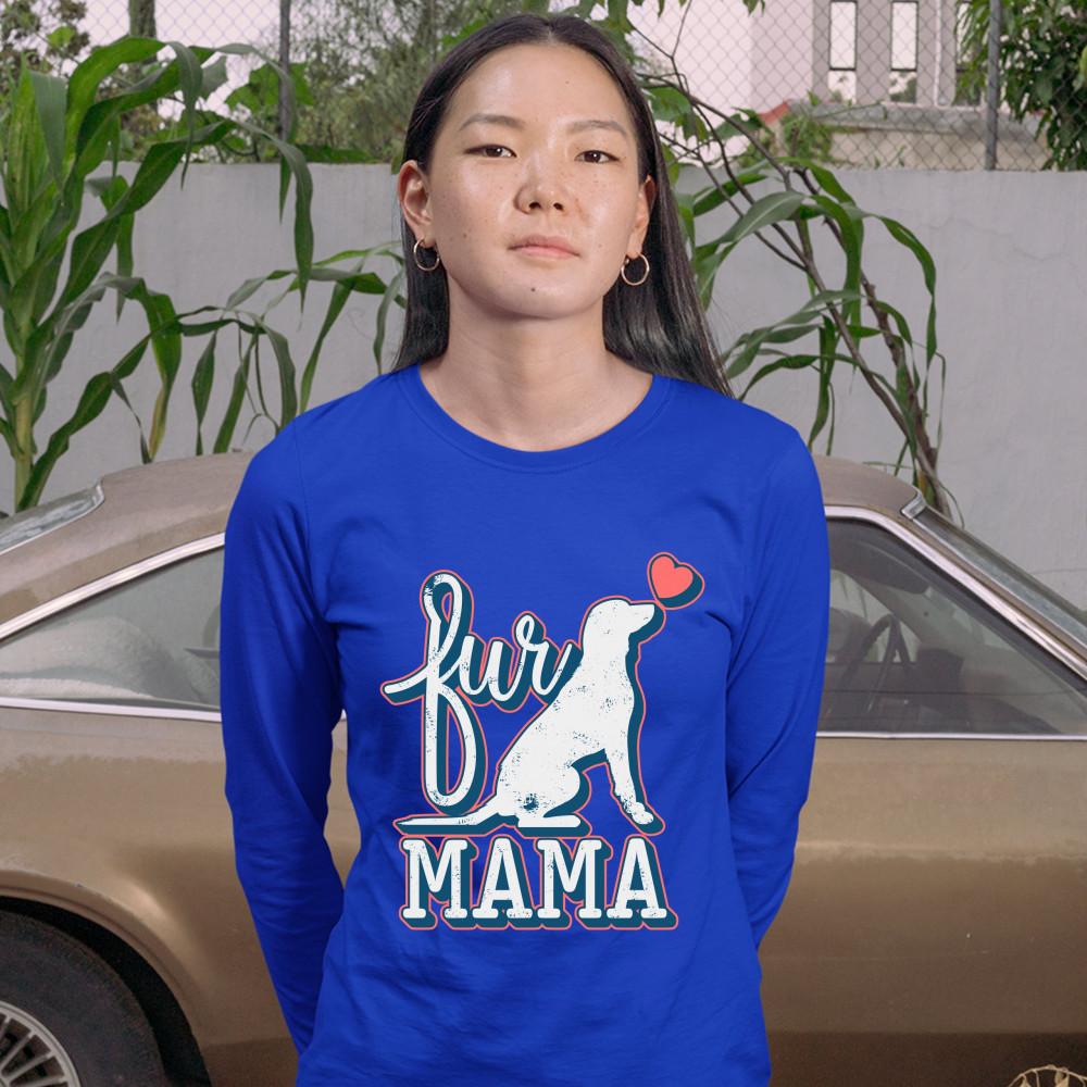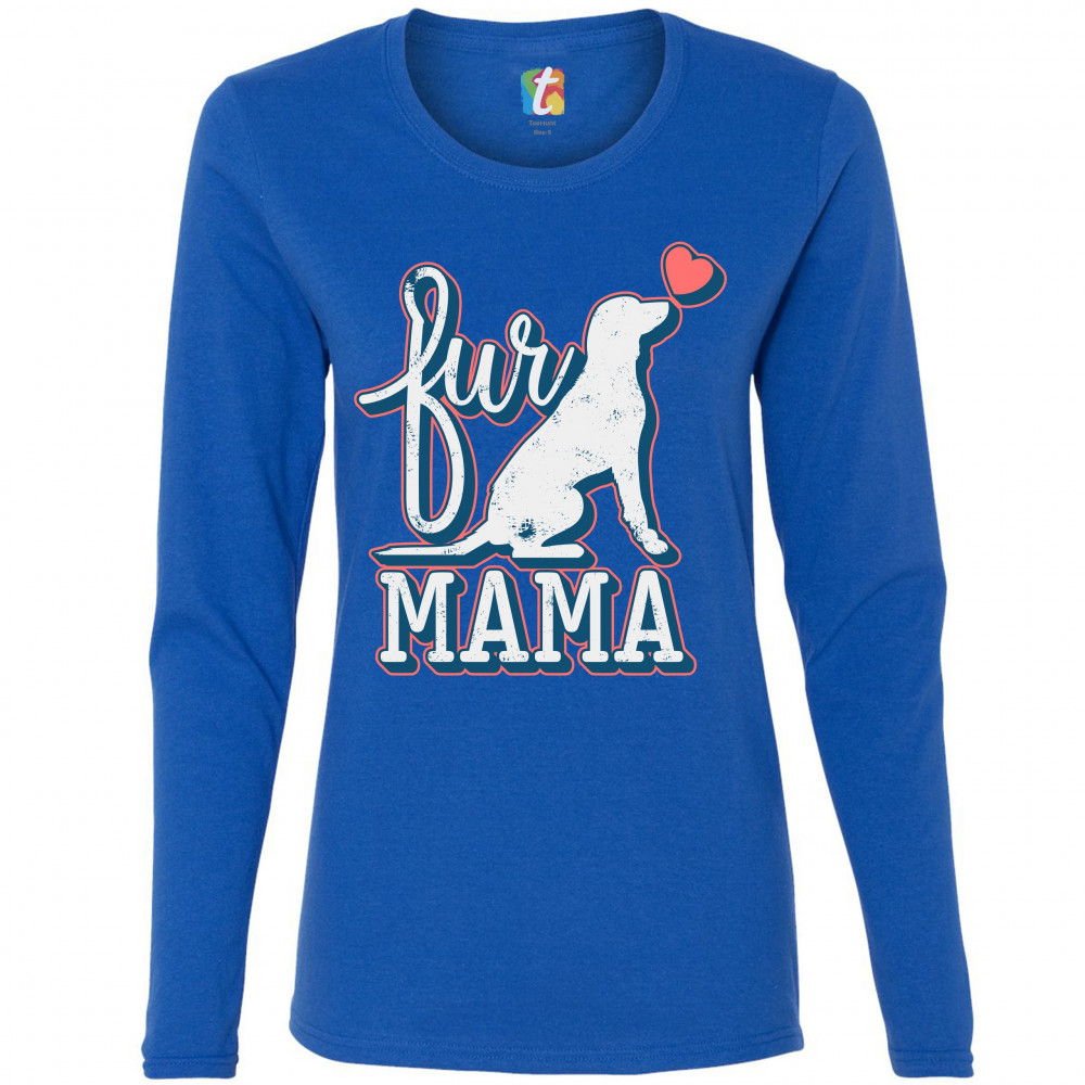 FUR MAMA women's long sleeve t-shirt i love my dog pet owner mother's day royal blue