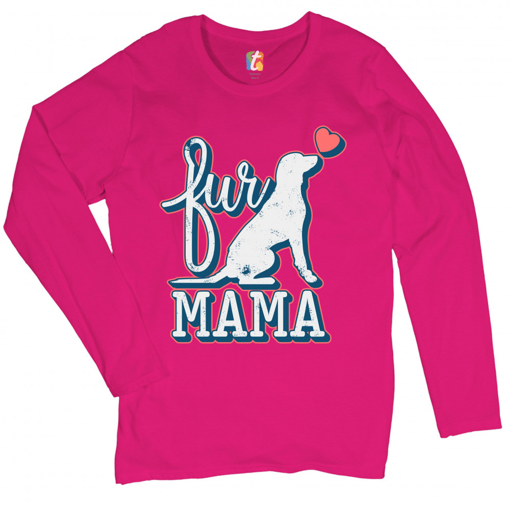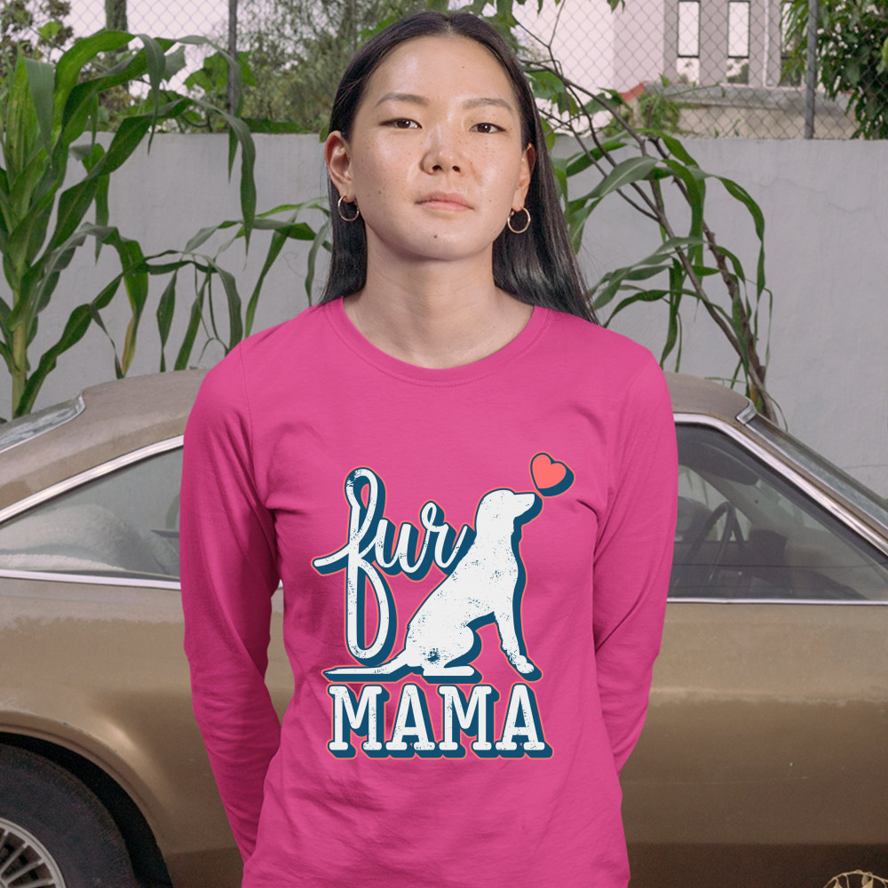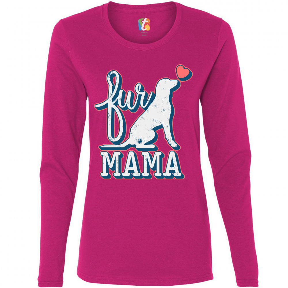 FUR MAMA women's long sleeve t-shirt i love my dog pet owner mother's day pink