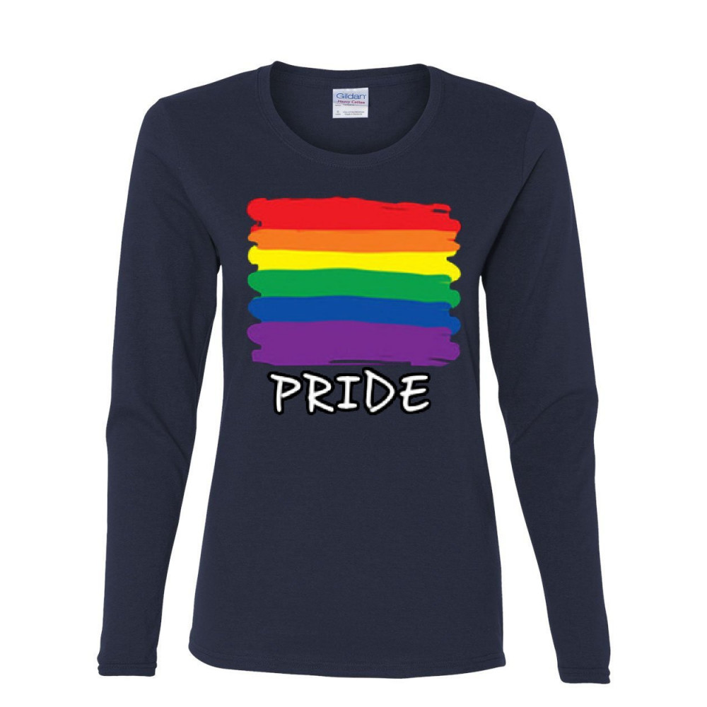 GAY PRIDE women's long sleeve tee rainbow flag lgbt marriage love wins navy blue