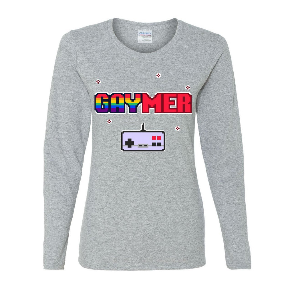 QUEER GAYMER CONTROLLER gaymer women's long sleeve tee lgbt queer rainbow gay gaming console controller gray
