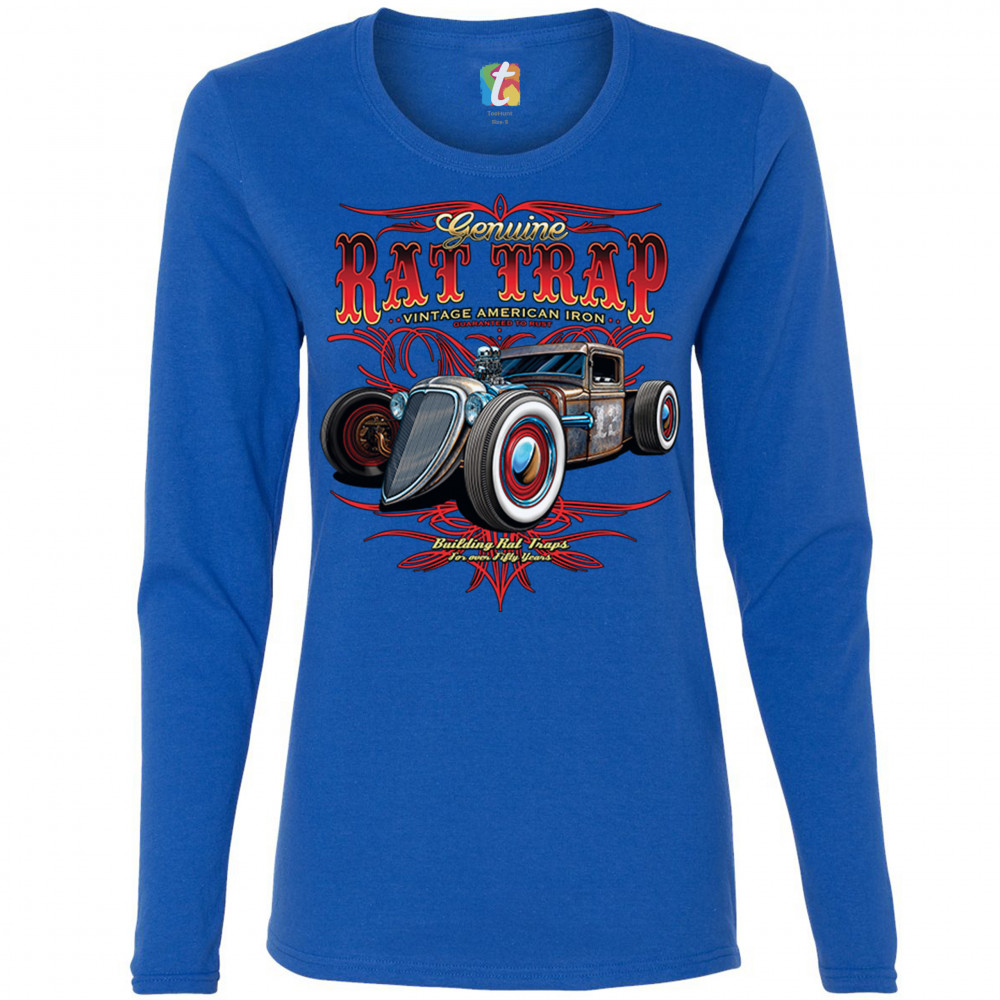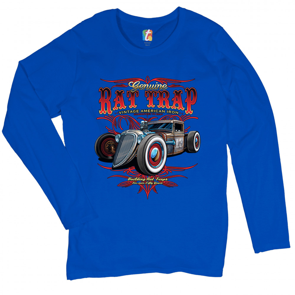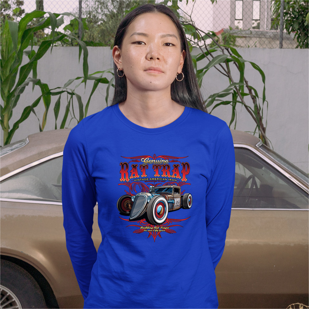 GENUINE RAT TRAP women's long sleeve t-shirt route 66 retro hot rod old school royal blue