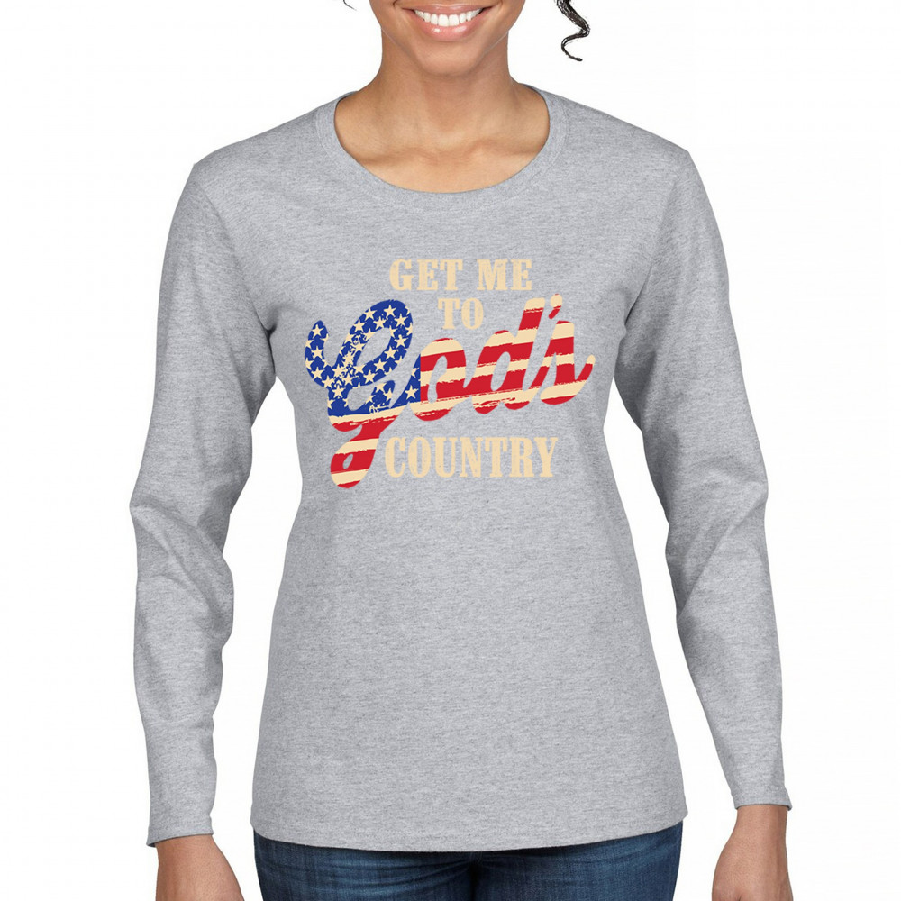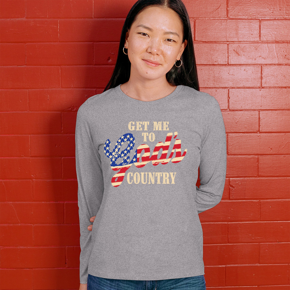 Bold patriotic faith shirt featuring USA flag text. Great for rural life, Christian pride, believers, and country-loving Americans.