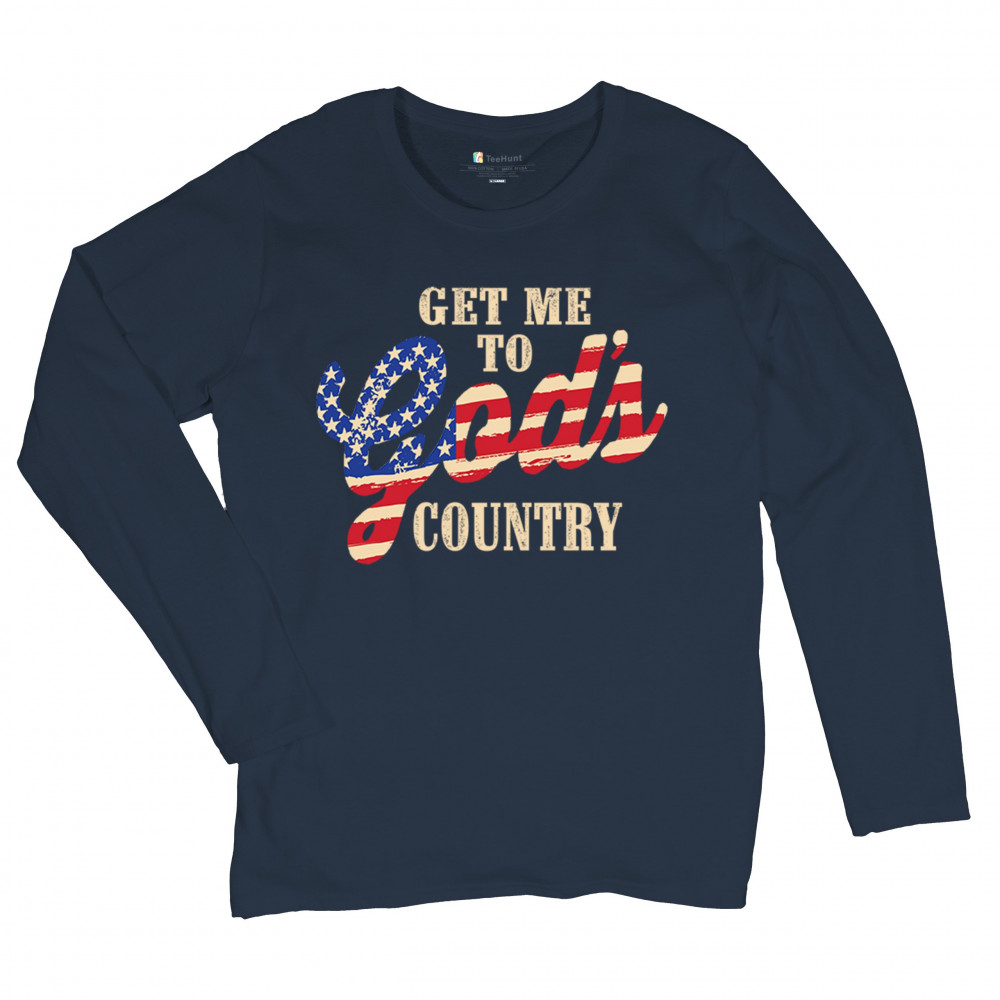 Bold patriotic faith shirt featuring USA flag text. Great for rural life, Christian pride, believers, and country-loving Americans.