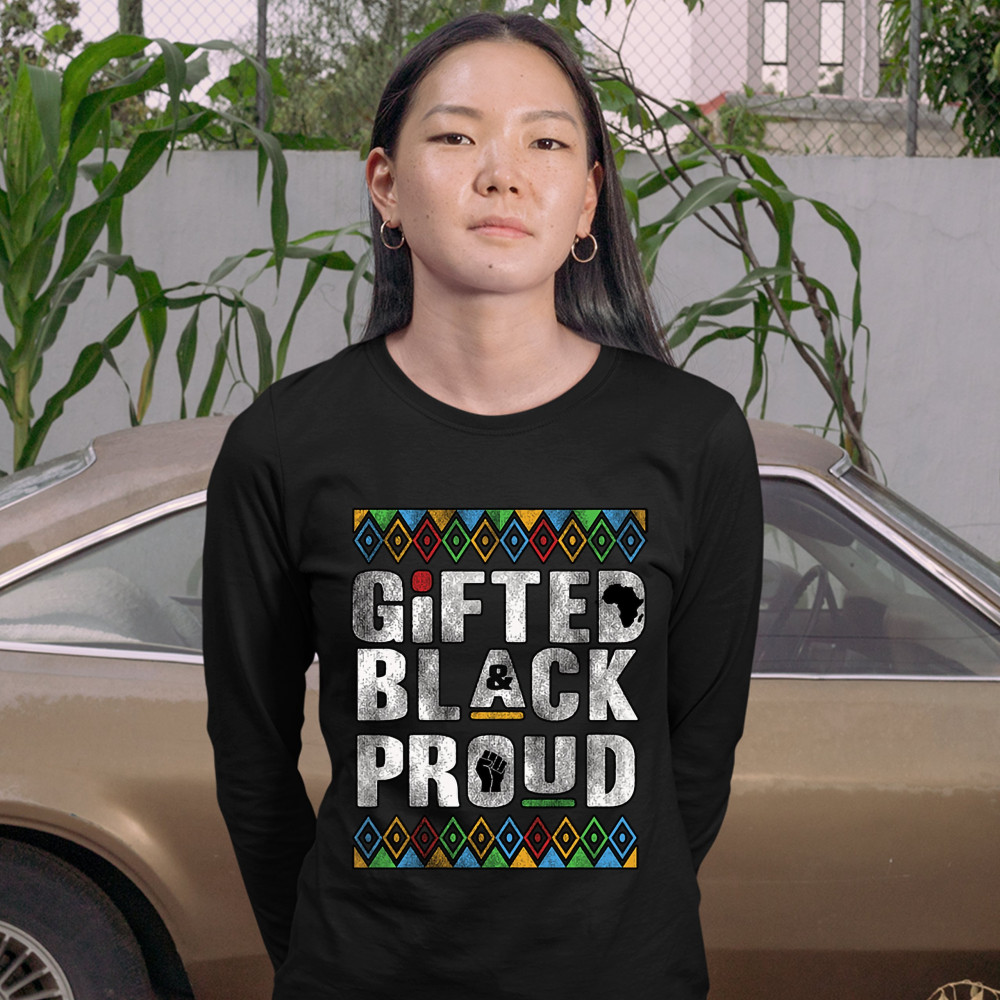 GIFTED BLACK & PROUD women's long sleeve t-shirt african american blm activism black