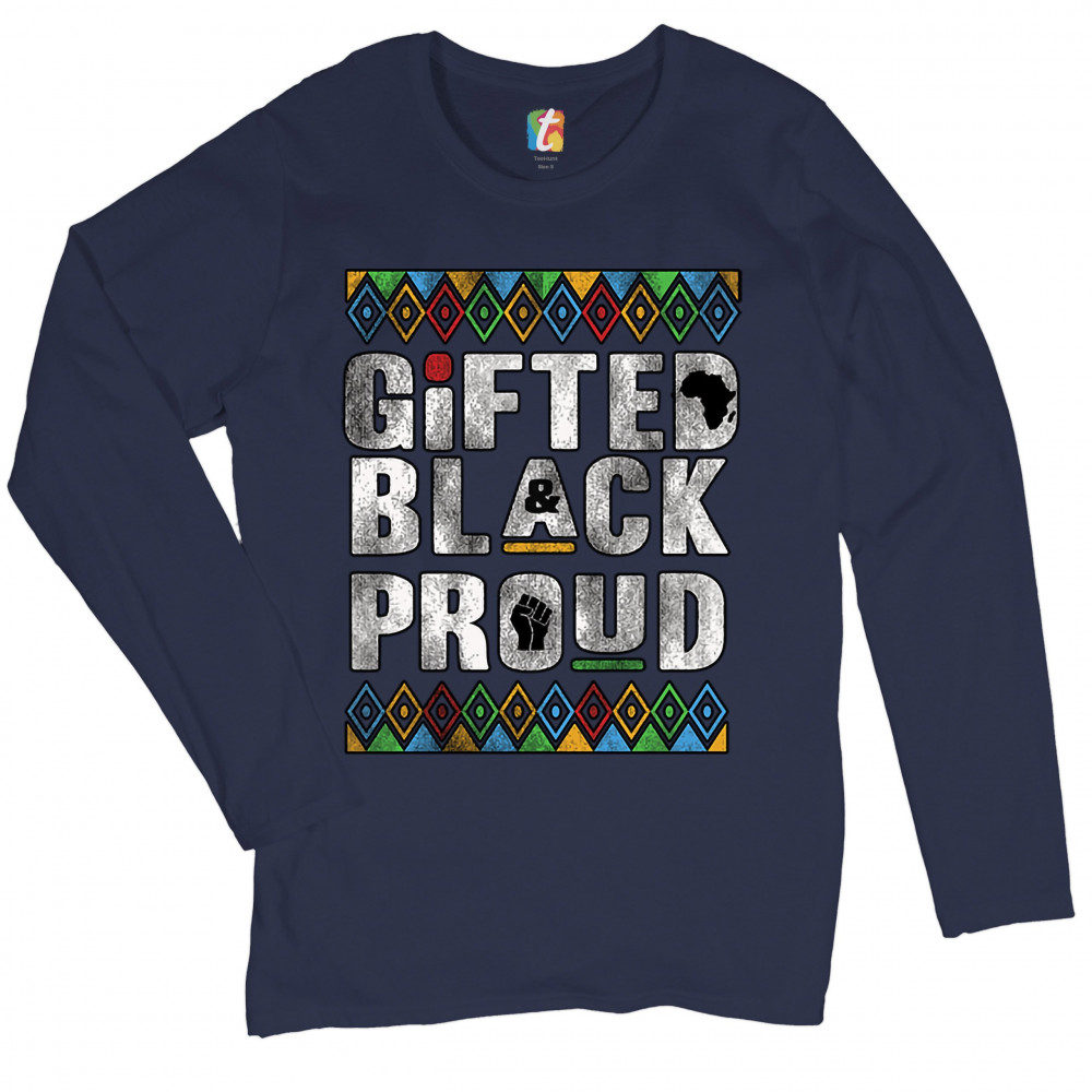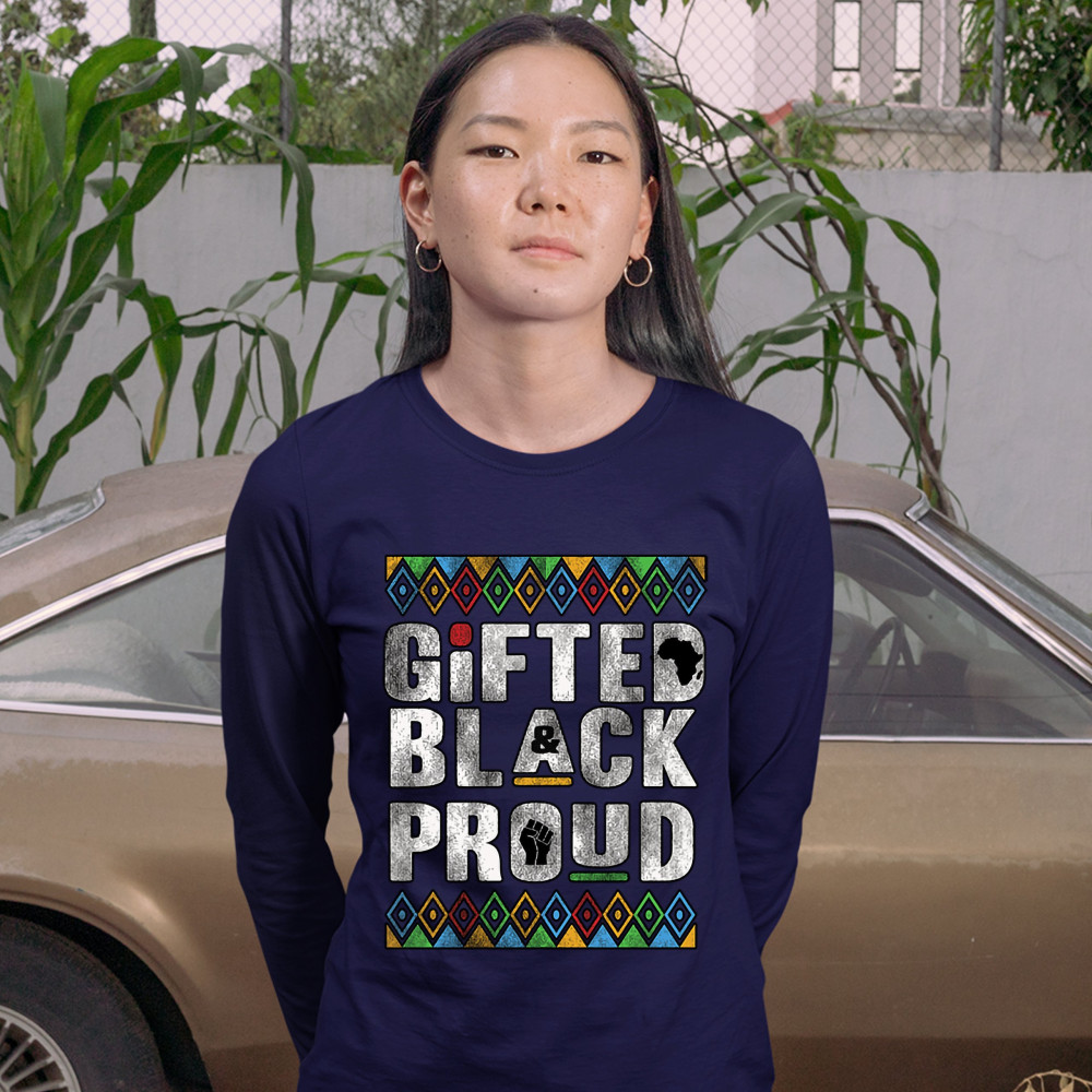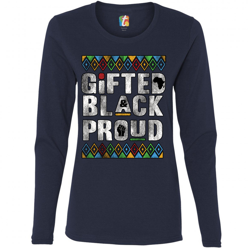 GIFTED BLACK & PROUD women's long sleeve t-shirt african american blm activism navy blue