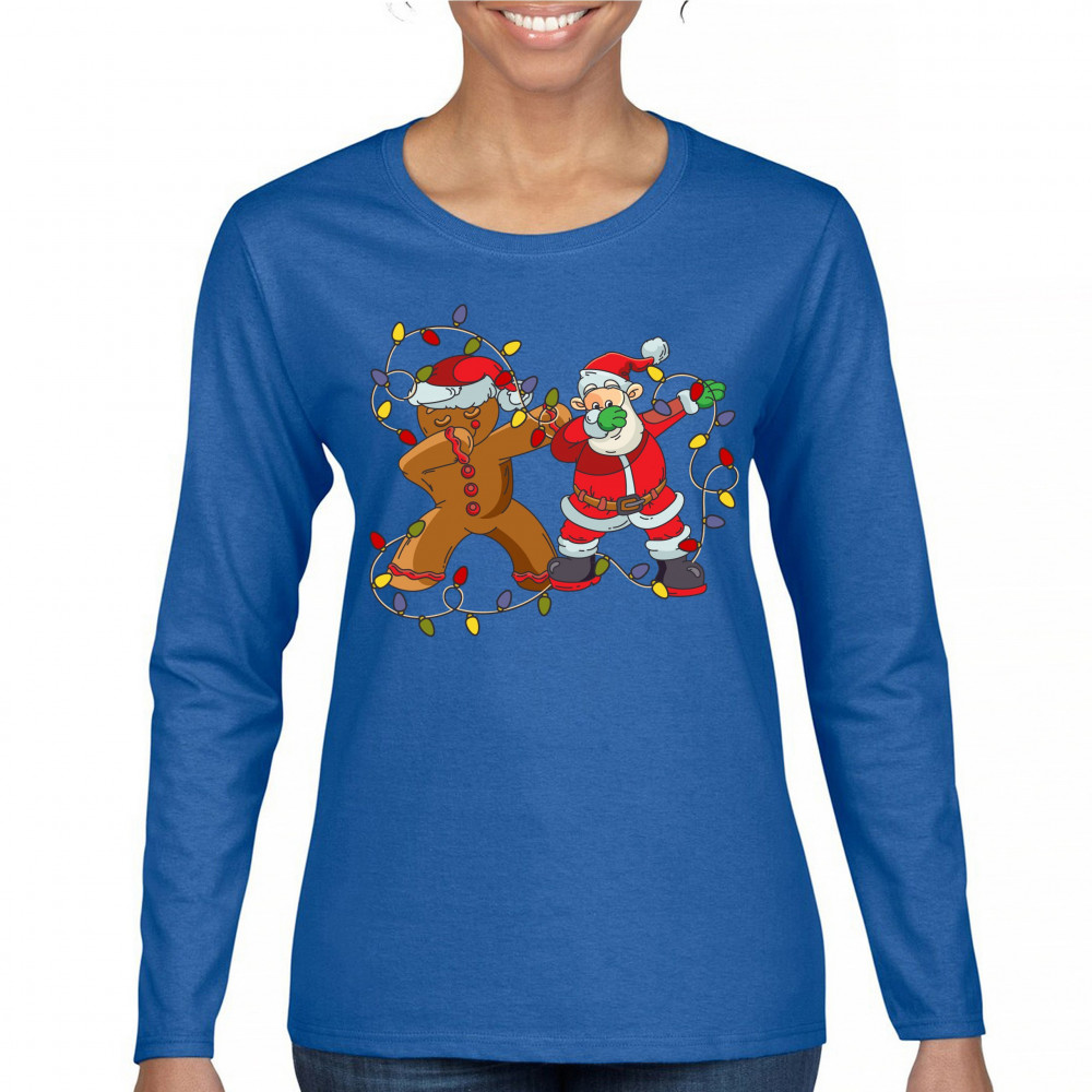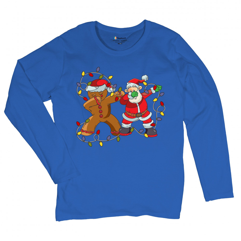 GINGERBREAD MAN AND SANTA CLAUS DAB DANCE women's long sleeve t-shirt christmas royal blue