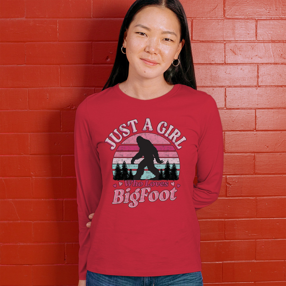 Celebrate your love for all things cryptid with this cute and retro Bigfoot design. Perfect for girls obsessed with Sasquatch, this playful graphic features a pink and teal sunset, ideal for fans, campers, explorers, and believers. A fun gift for paranormal lovers and outdoorsy adventurers alike.