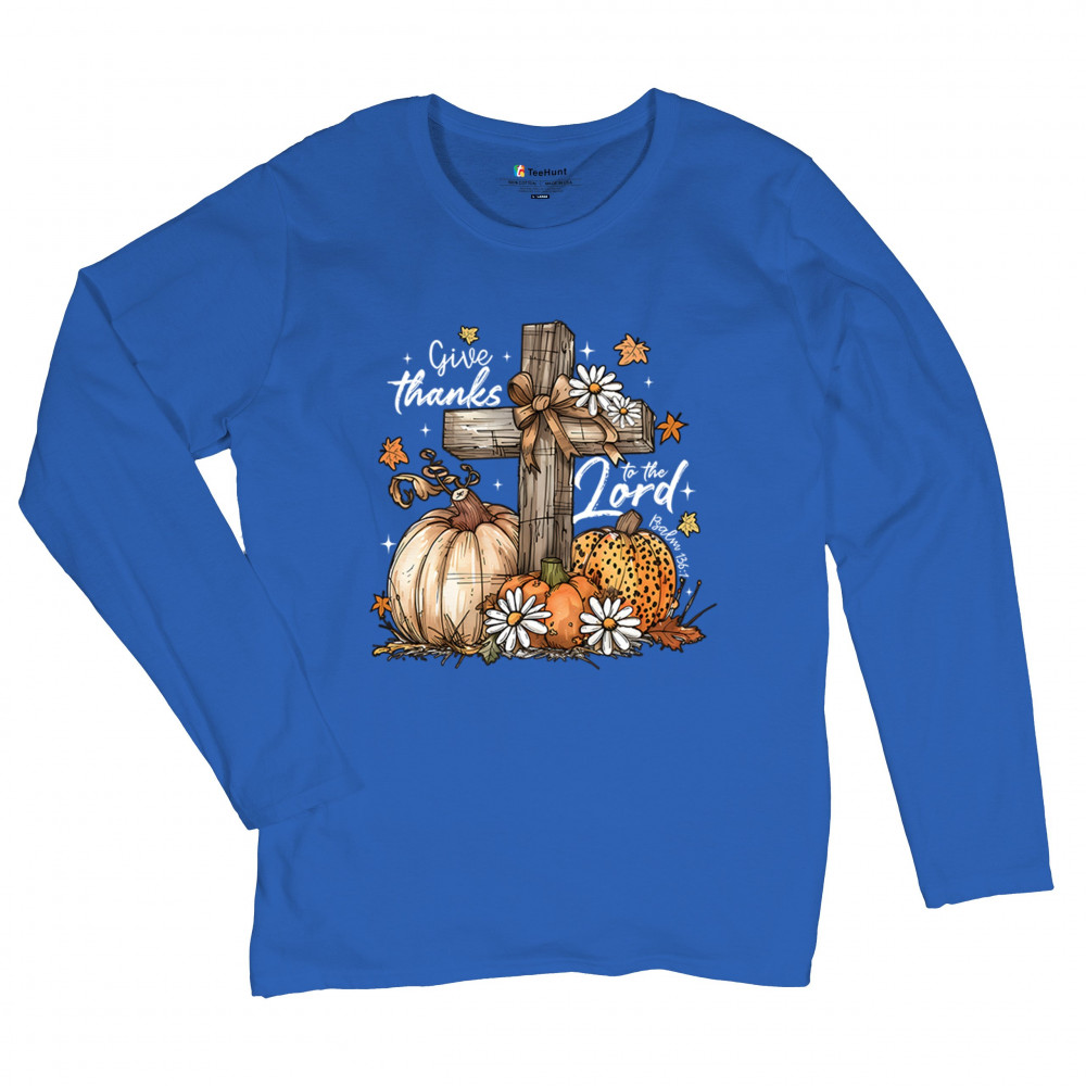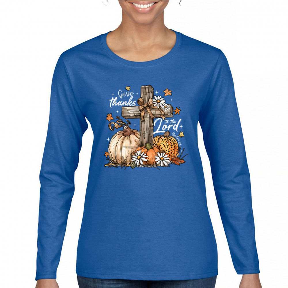 Thanksgiving design with pumpkins, daisies, and rustic cross. Perfect for Turkey Day, faithful family gatherings, and fall festival blessings.