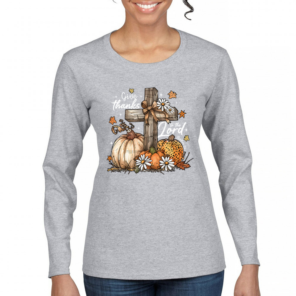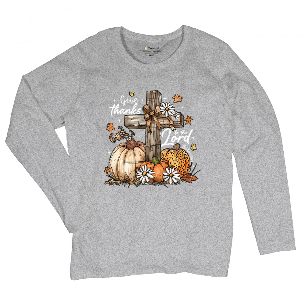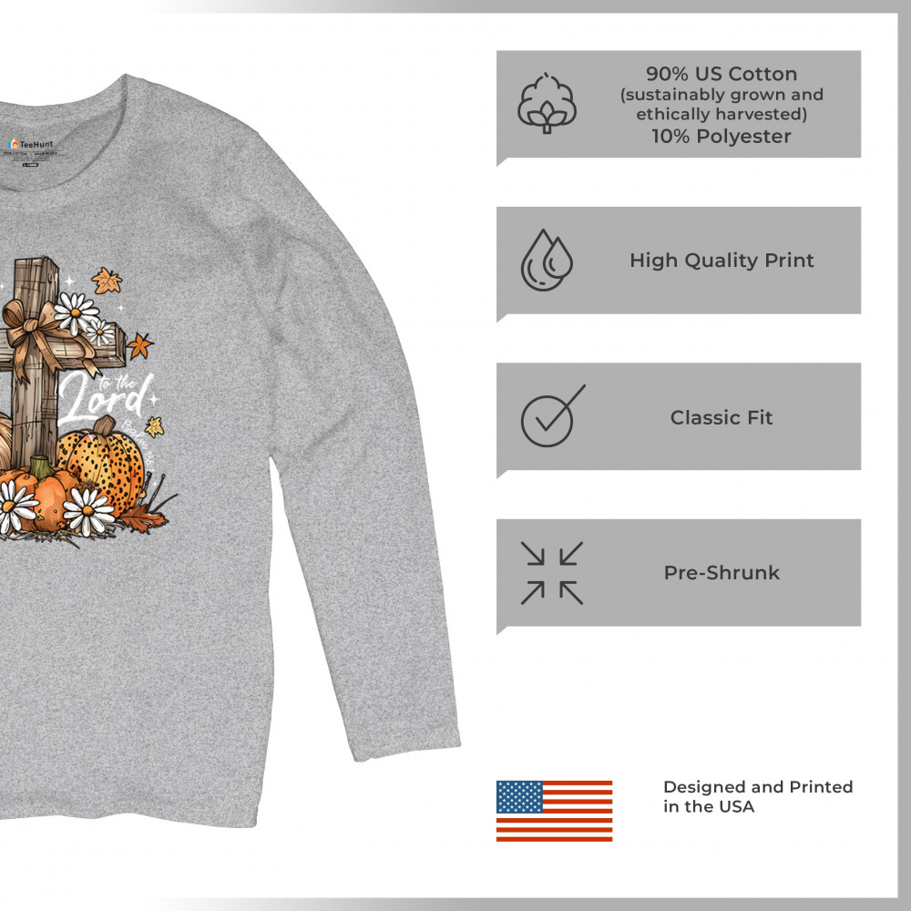 Thanksgiving design with pumpkins, daisies, and rustic cross. Perfect for Turkey Day, faithful family gatherings, and fall festival blessings.