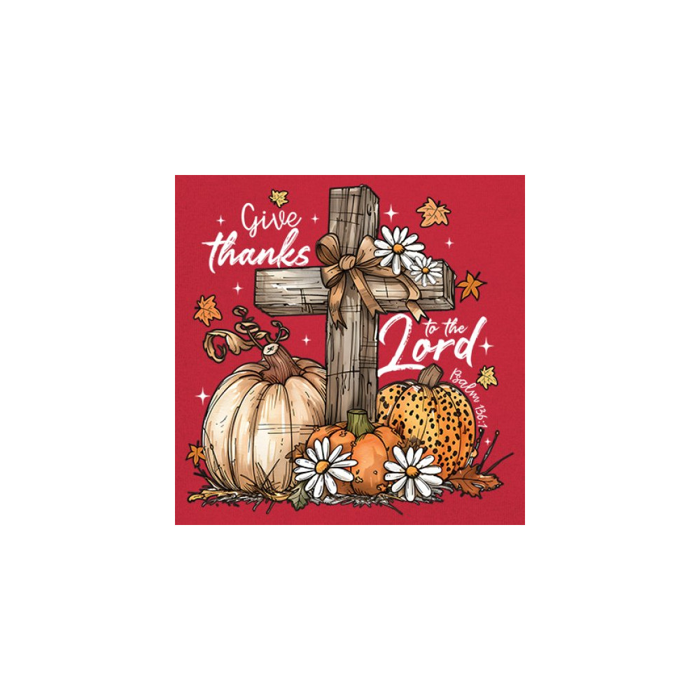 Thanksgiving design with pumpkins, daisies, and rustic cross. Perfect for Turkey Day, faithful family gatherings, and fall festival blessings.