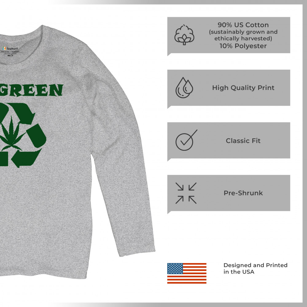 "Go Green" design combining a recycling symbol with a cannabis leaf. Perfect for those who love Mary Jane, sustainable living, and stoned humor.