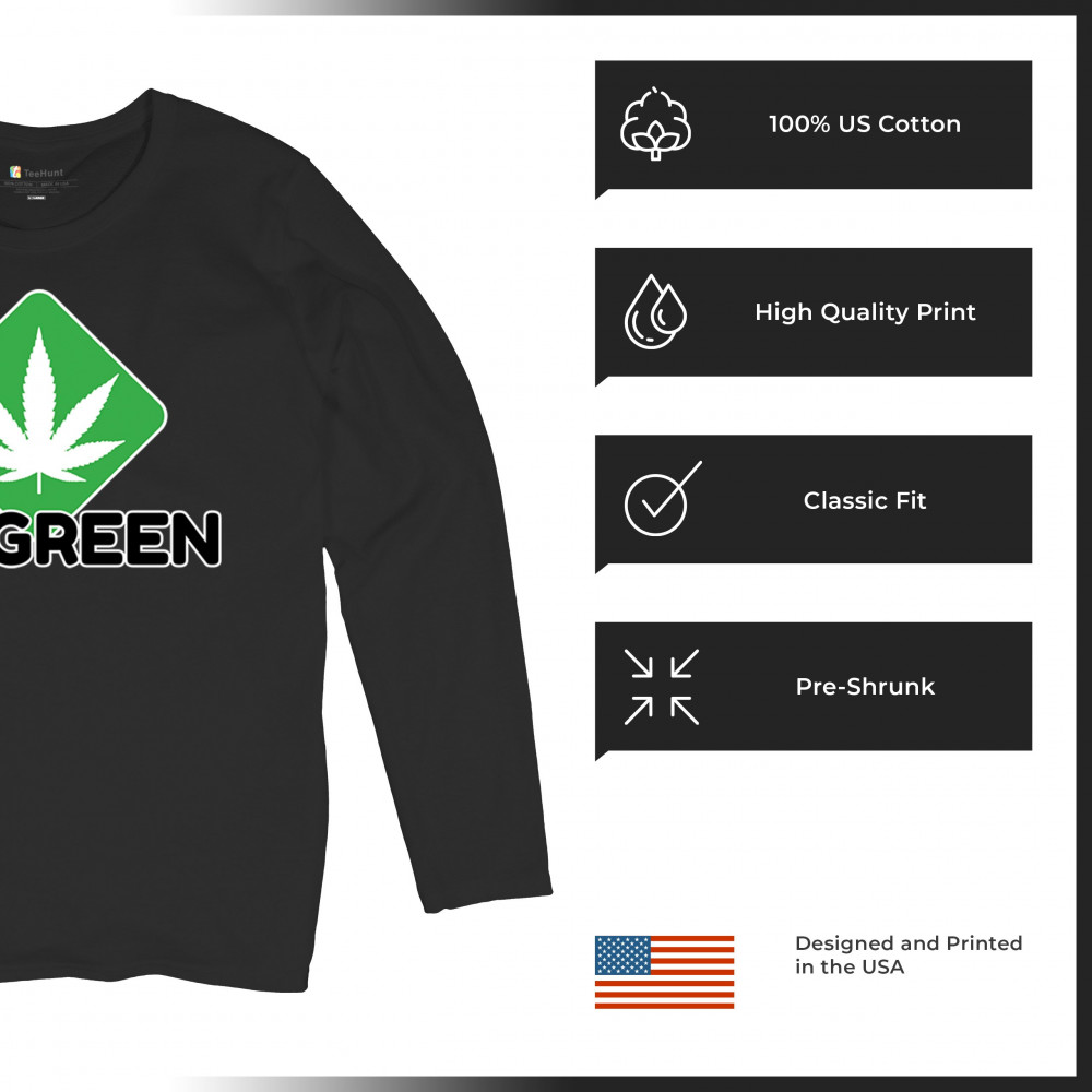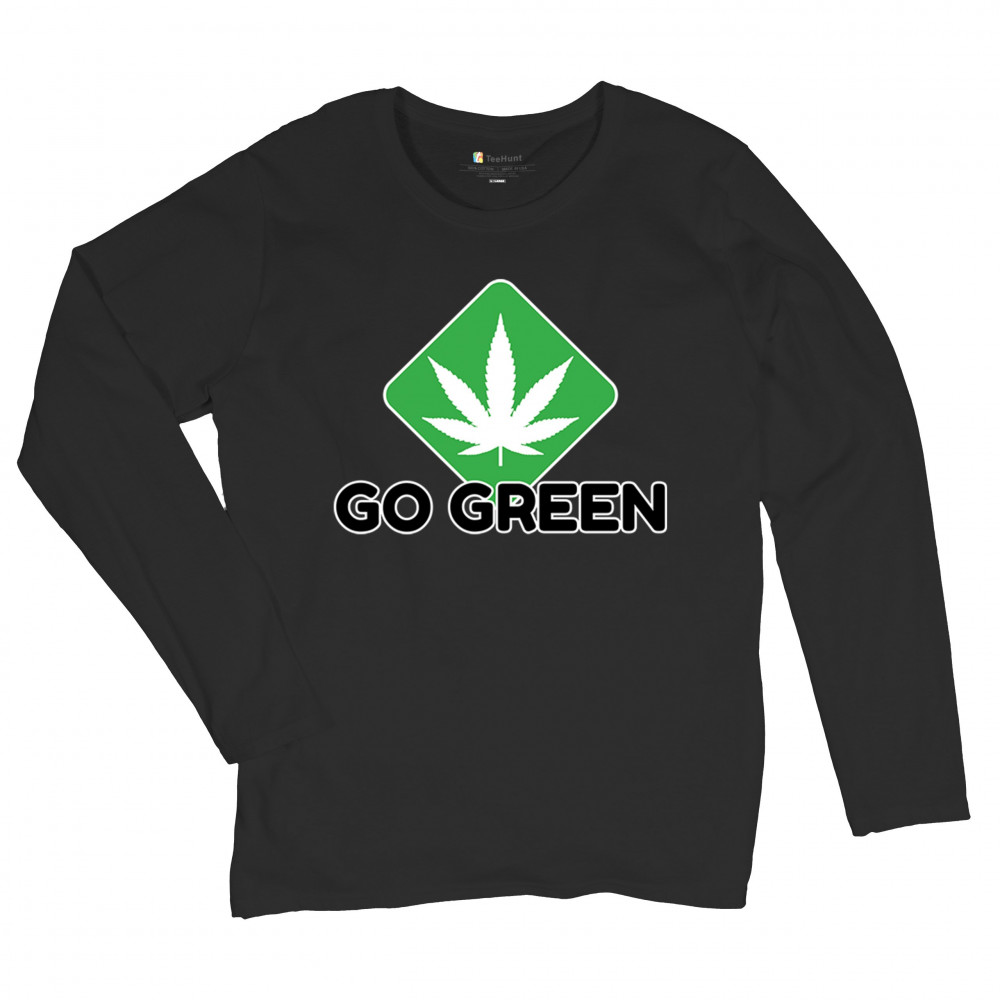 Bold Go Green design with cannabis leaf icon. Perfect for 420 fans, eco-conscious wearers, stoners, and marijuana advocates.