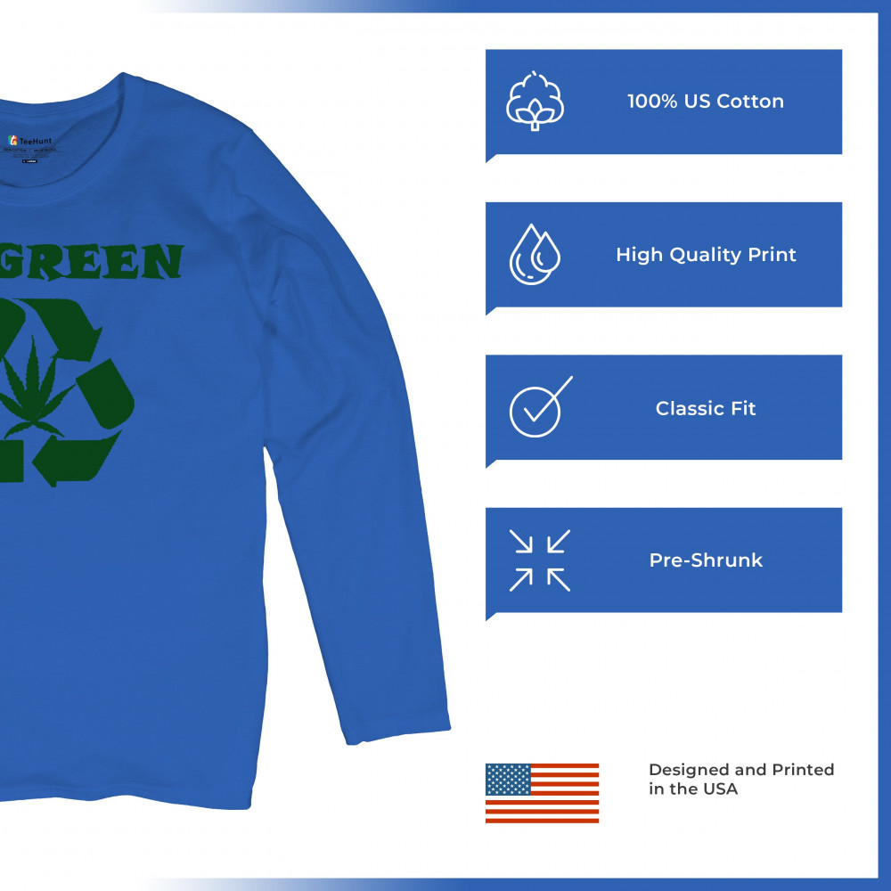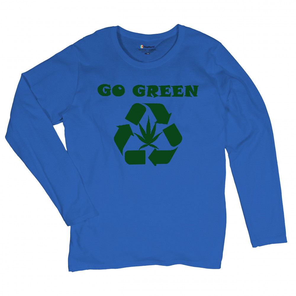 "Go Green" design combining a recycling symbol with a cannabis leaf. Perfect for those who love Mary Jane, sustainable living, and stoned humor.