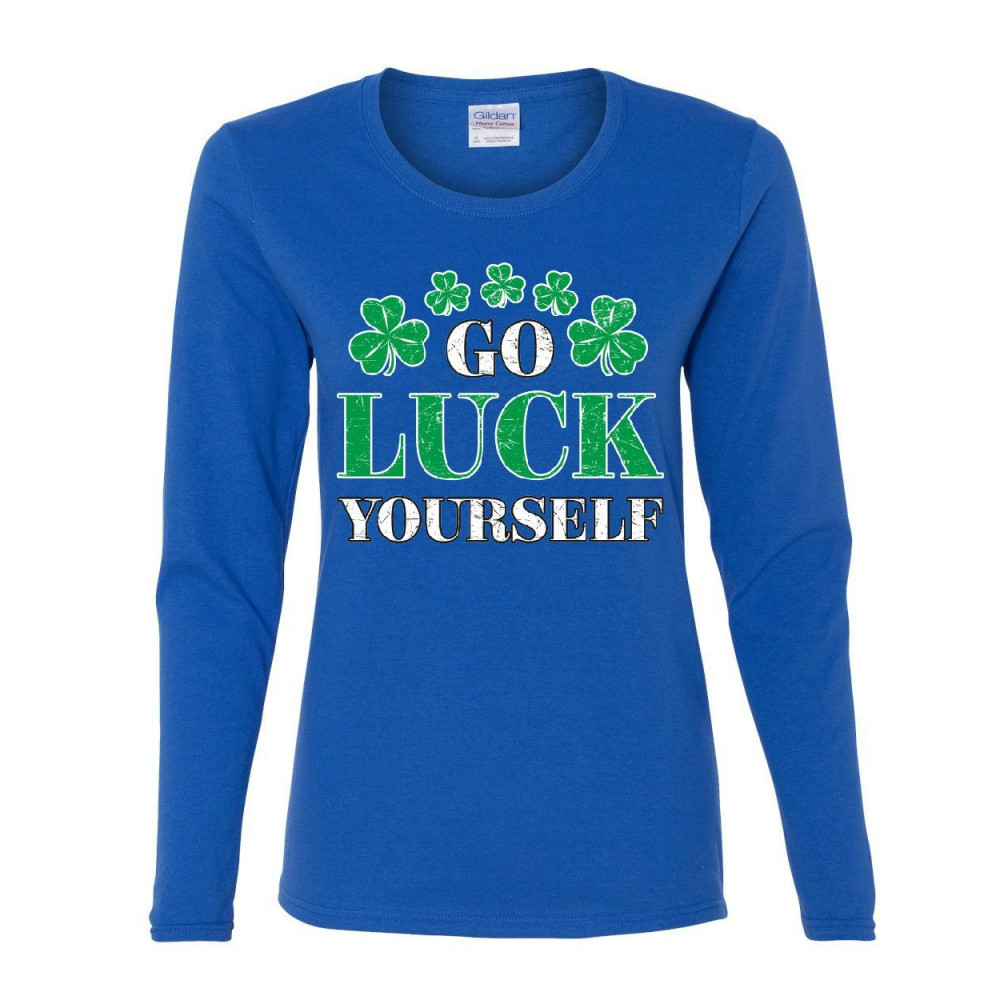 GO LUCK YOURSELF women's long sleeve tee st. patrick's day offensive funny irish royal blue