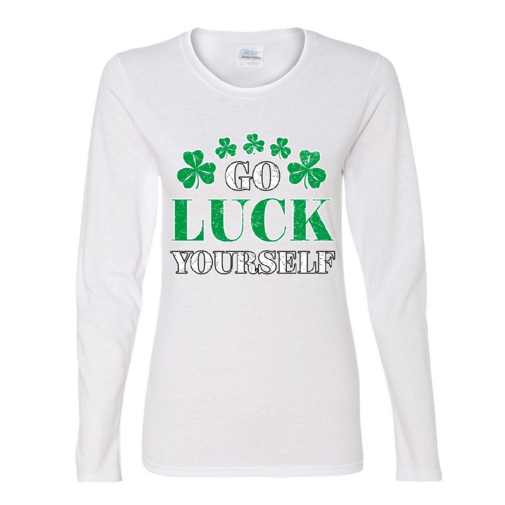 GO LUCK YOURSELF women's long sleeve tee st. patrick's day offensive funny irish white