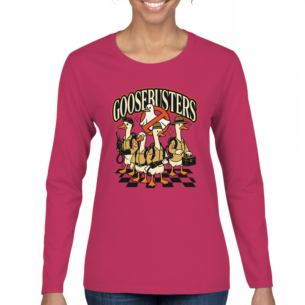 Goosebusters Halloween goose parody shirt – spooky goose design with silly goose humor, comedy bird style, Trick or Treat fun, and creepy night vibes.