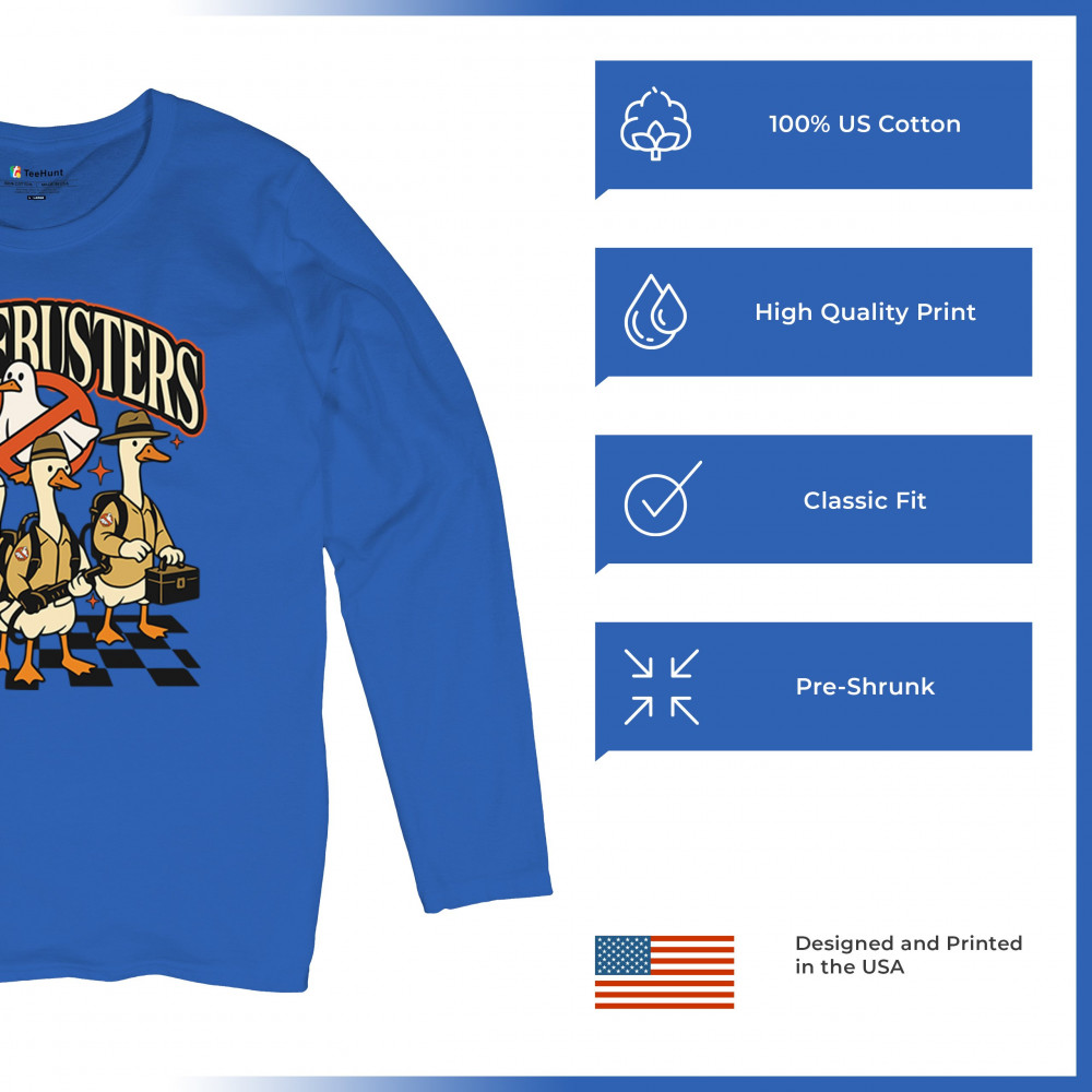 Celebrate October 31 with our Goosebusters shirt—a perfect mix of spooky and parody fun. This halloween goose design combines silly goose humor with ghost-busting style, making it a must-have for fans of funny goose shirts and spooky goose shirts. Ideal as a goose costume tee, goose parody shirt, or comedy bird shirt, this silly design adds Trick or Treat laughter to any haunted house or scary night.