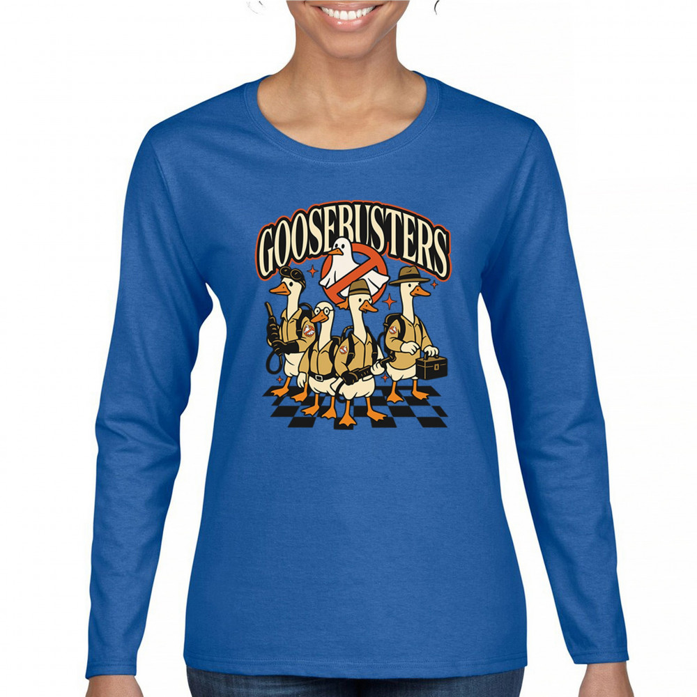 Goosebusters Halloween goose parody shirt – spooky goose design with silly goose humor, comedy bird style, Trick or Treat fun, and creepy night vibes.