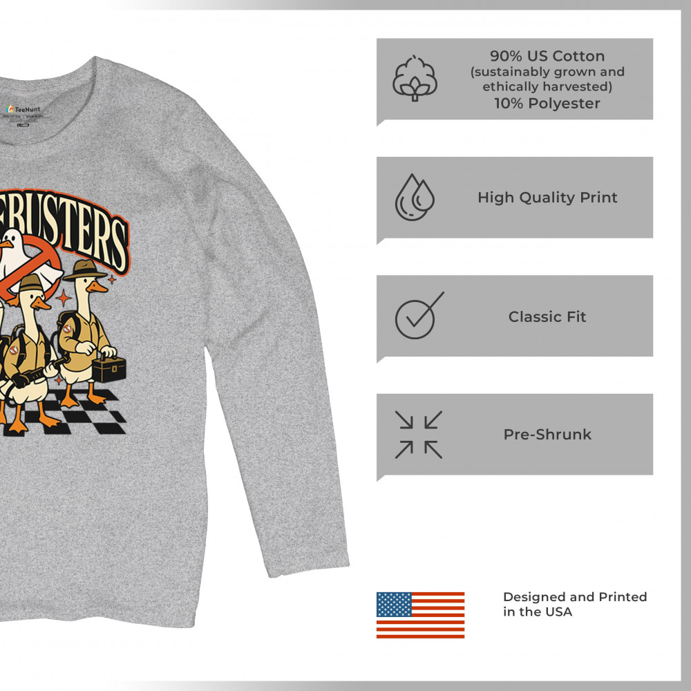 Celebrate October 31 with our Goosebusters shirt—a perfect mix of spooky and parody fun. This halloween goose design combines silly goose humor with ghost-busting style, making it a must-have for fans of funny goose shirts and spooky goose shirts. Ideal as a goose costume tee, goose parody shirt, or comedy bird shirt, this silly design adds Trick or Treat laughter to any haunted house or scary night.