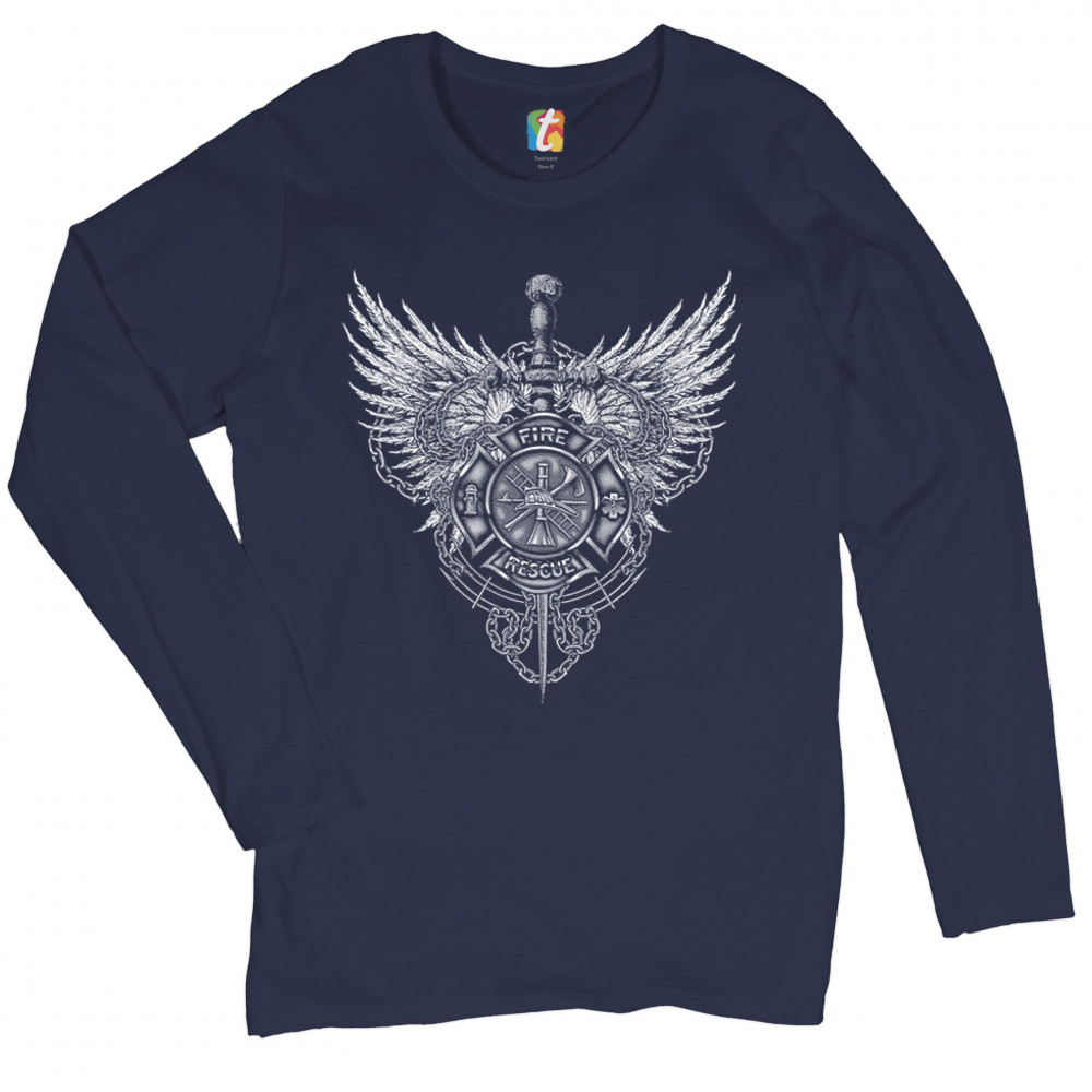GOTHIC FIREFIGHTER EMBLEM women's long sleeve t-shirt courage honor sacrifice navy blue