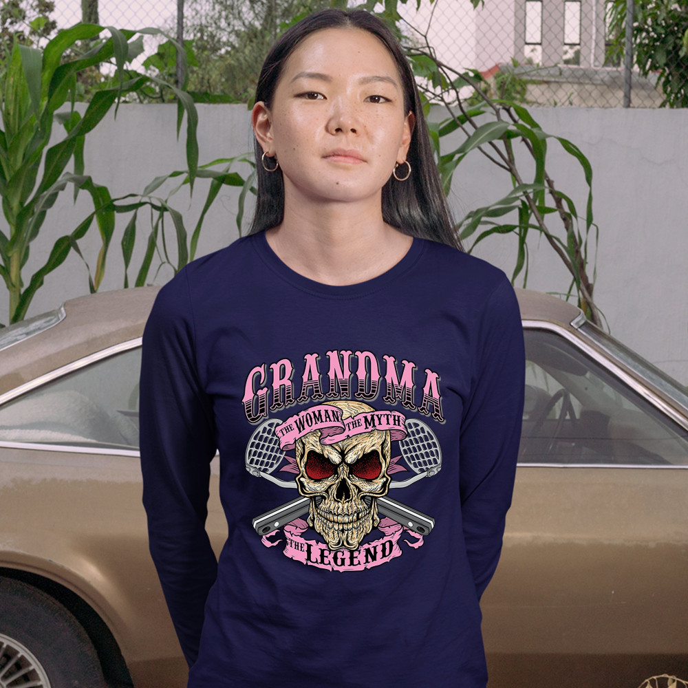 GRANDMA THE WOMAN THE MYTH THE LEGEND women's long sleeve t-shirt mother's day navy blue