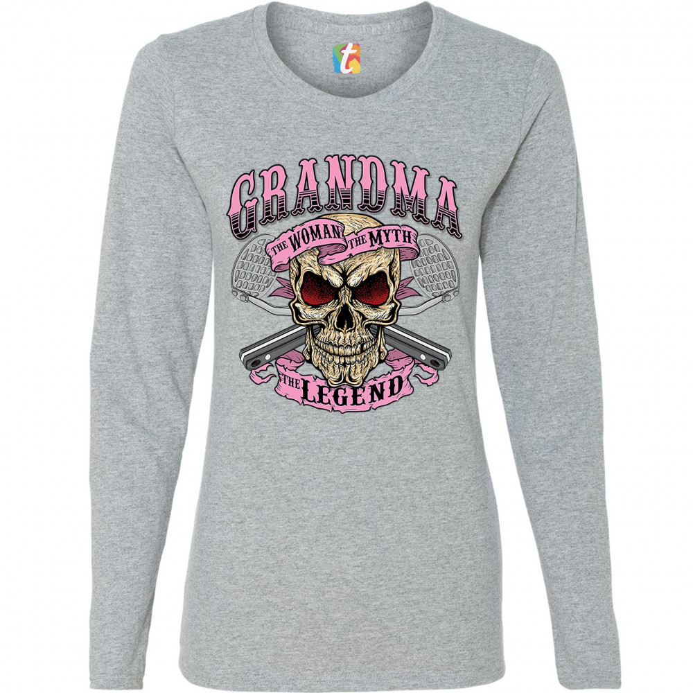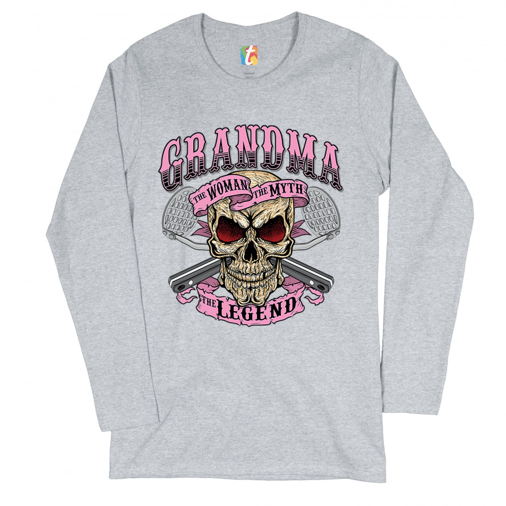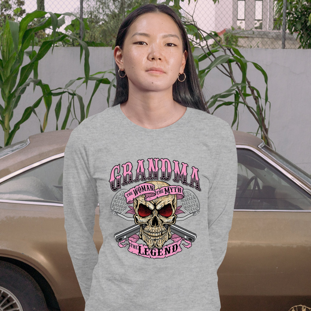GRANDMA THE WOMAN THE MYTH THE LEGEND women's long sleeve t-shirt mother's day gray