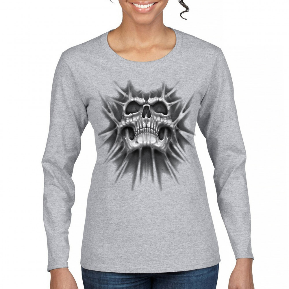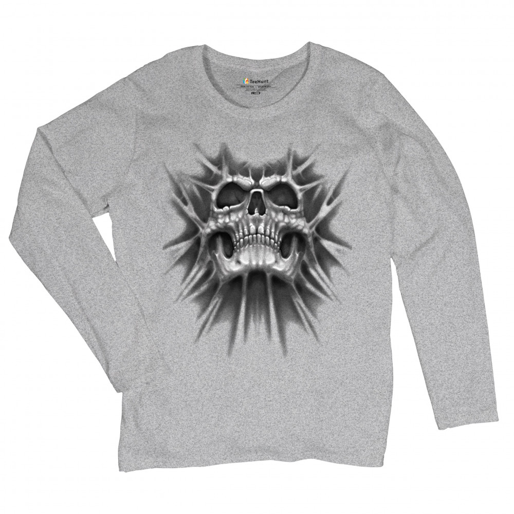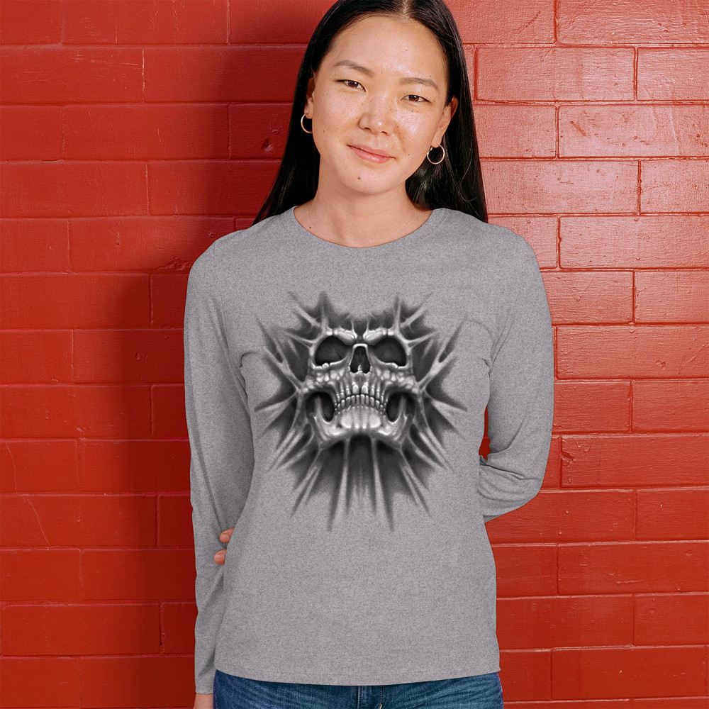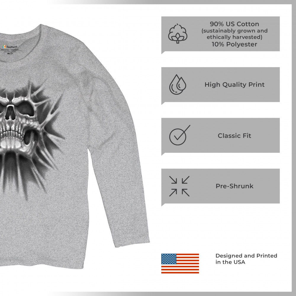 Gothic skull biker shirt with roots design. Perfect for Metalhead, Rock n Roll fans, edgy rebel fashion, and spooky Halloween vibes.