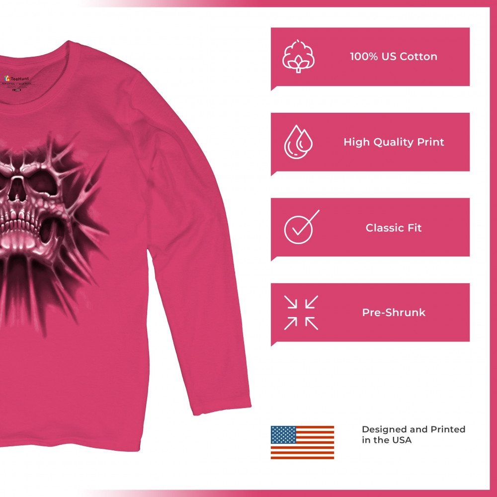 Gothic skull biker shirt with roots design. Perfect for Metalhead, Rock n Roll fans, edgy rebel fashion, and spooky Halloween vibes.