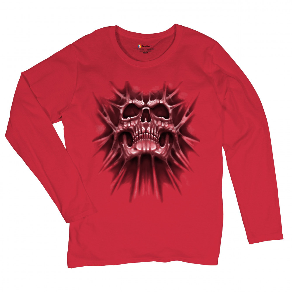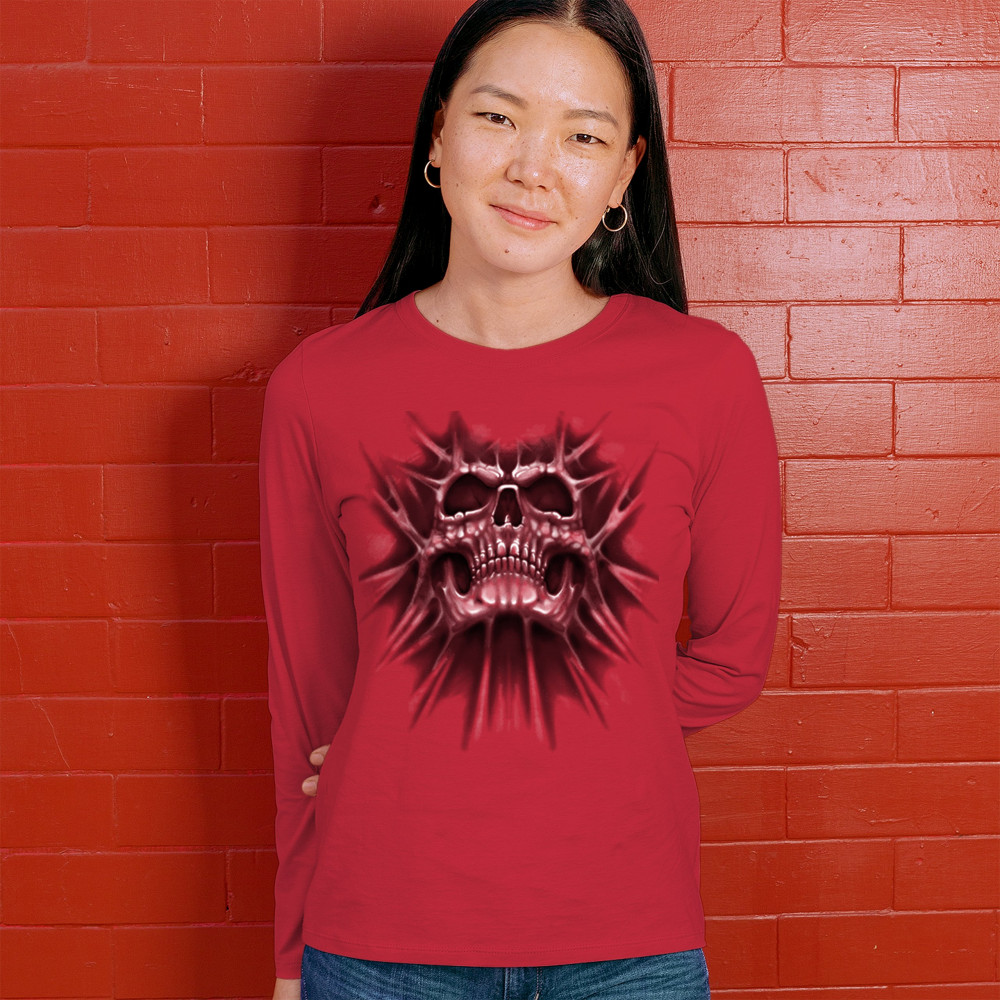 Gothic skull biker shirt with roots design. Perfect for Metalhead, Rock n Roll fans, edgy rebel fashion, and spooky Halloween vibes.