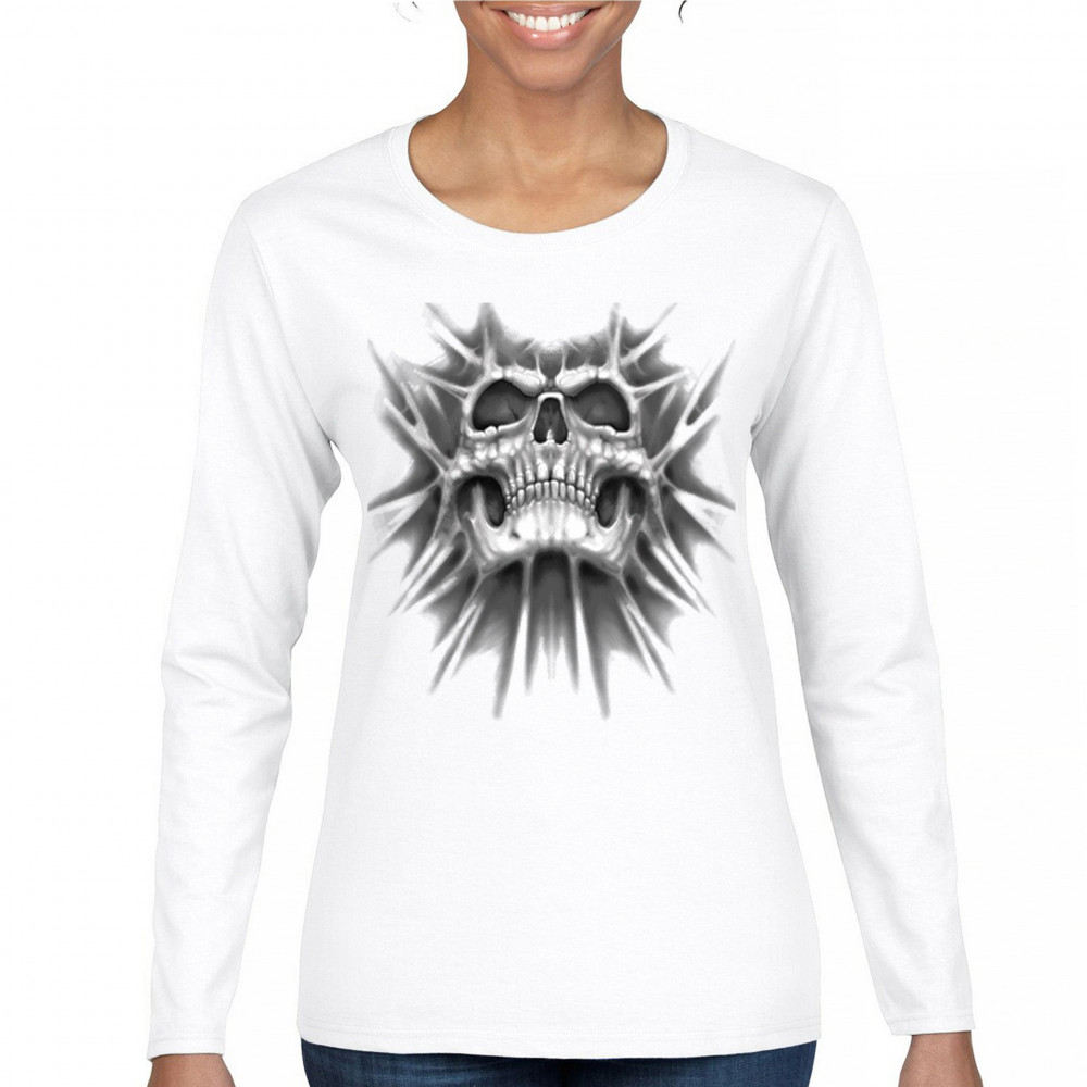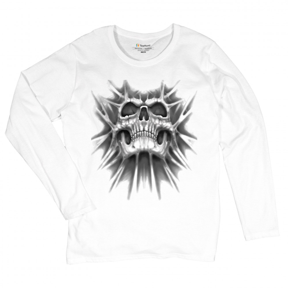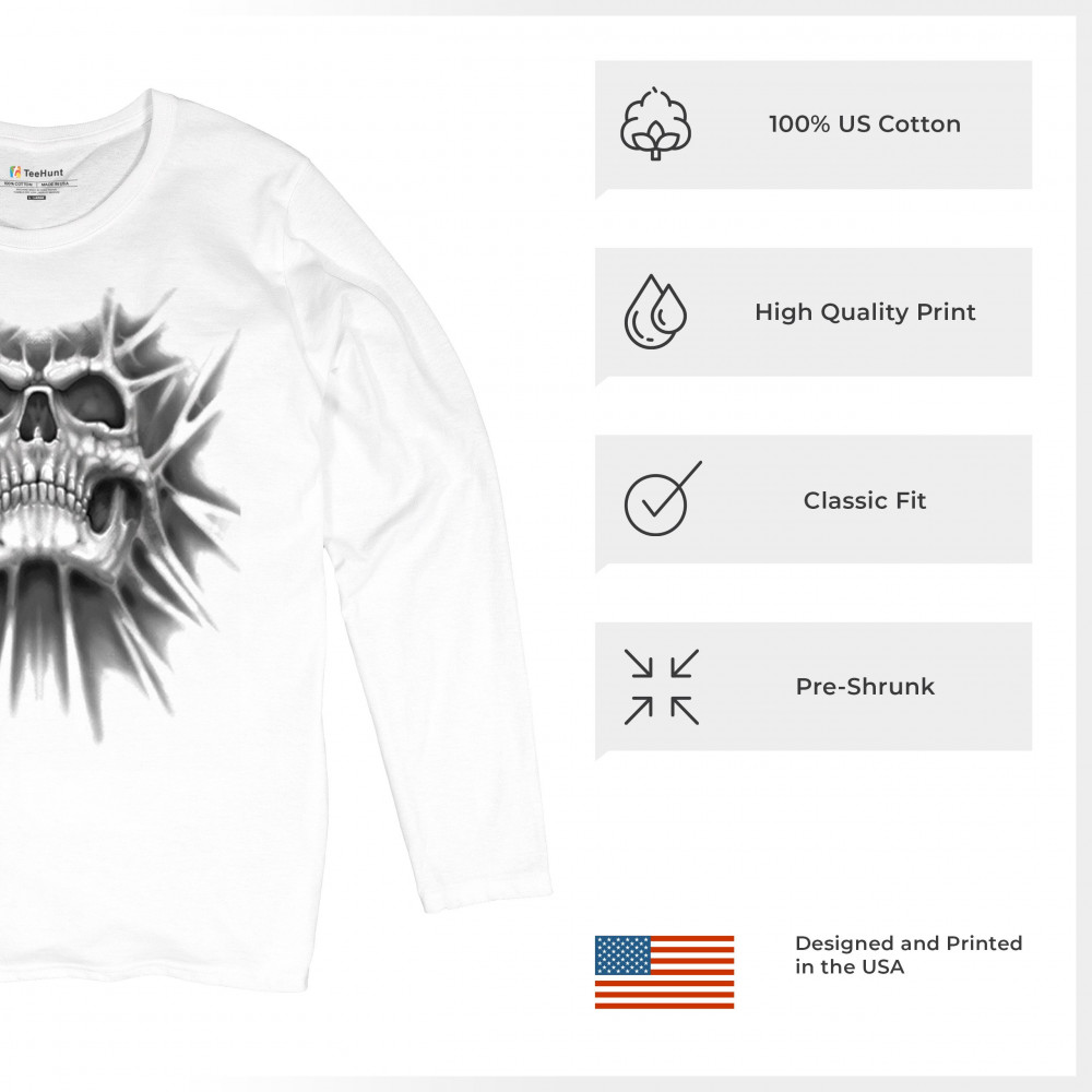 Gothic skull biker shirt with roots design. Perfect for Metalhead, Rock n Roll fans, edgy rebel fashion, and spooky Halloween vibes.