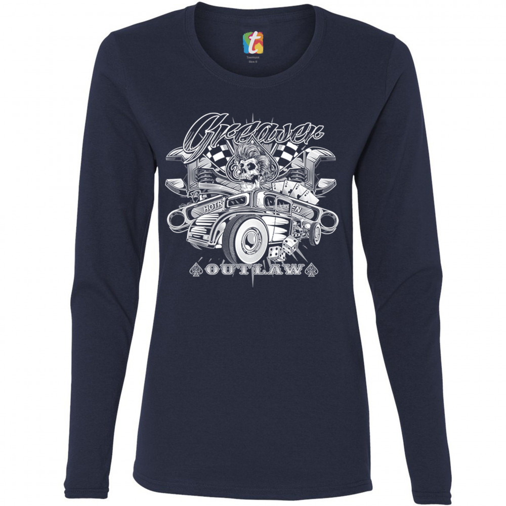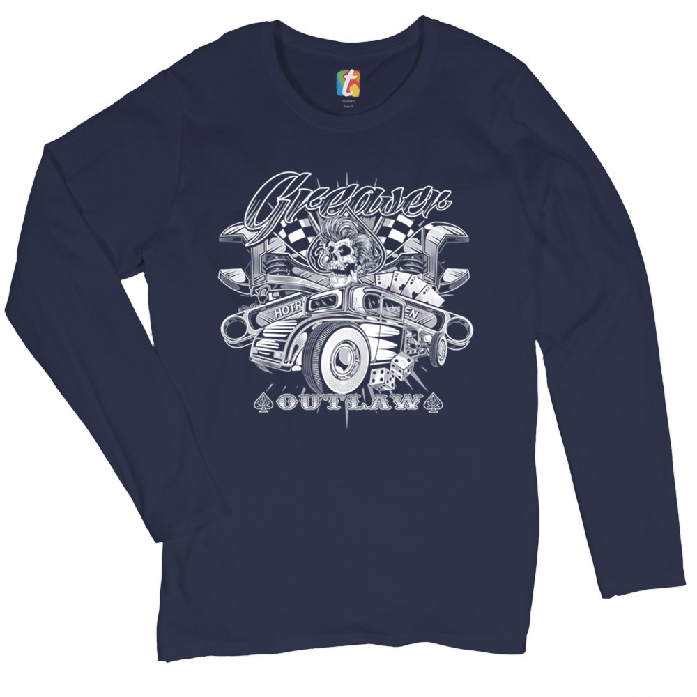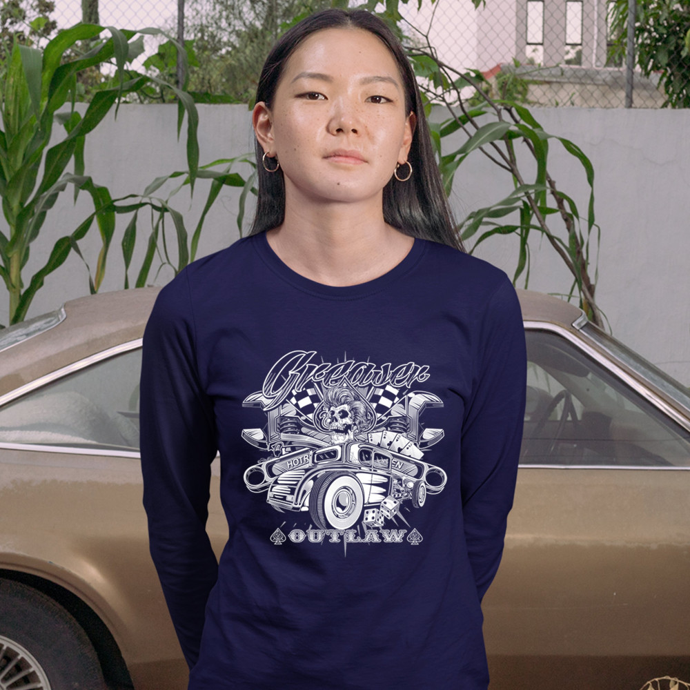 GREASER OUTLAW women's long sleeve t-shirt kustom kulture old school hot rod navy blue