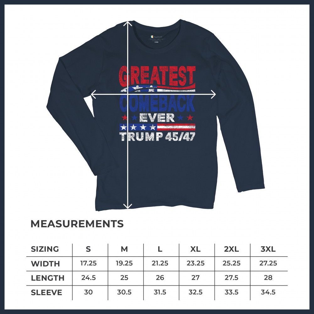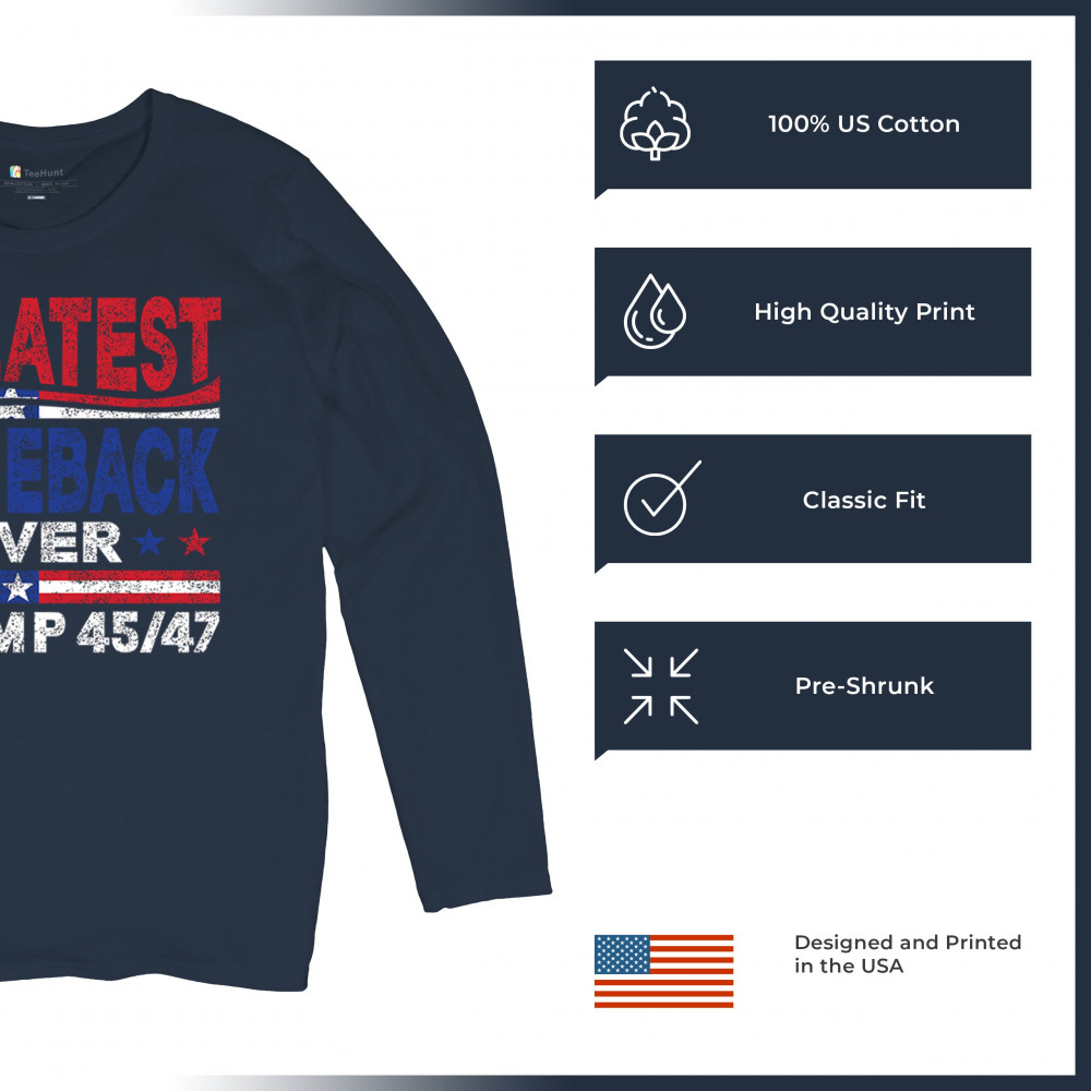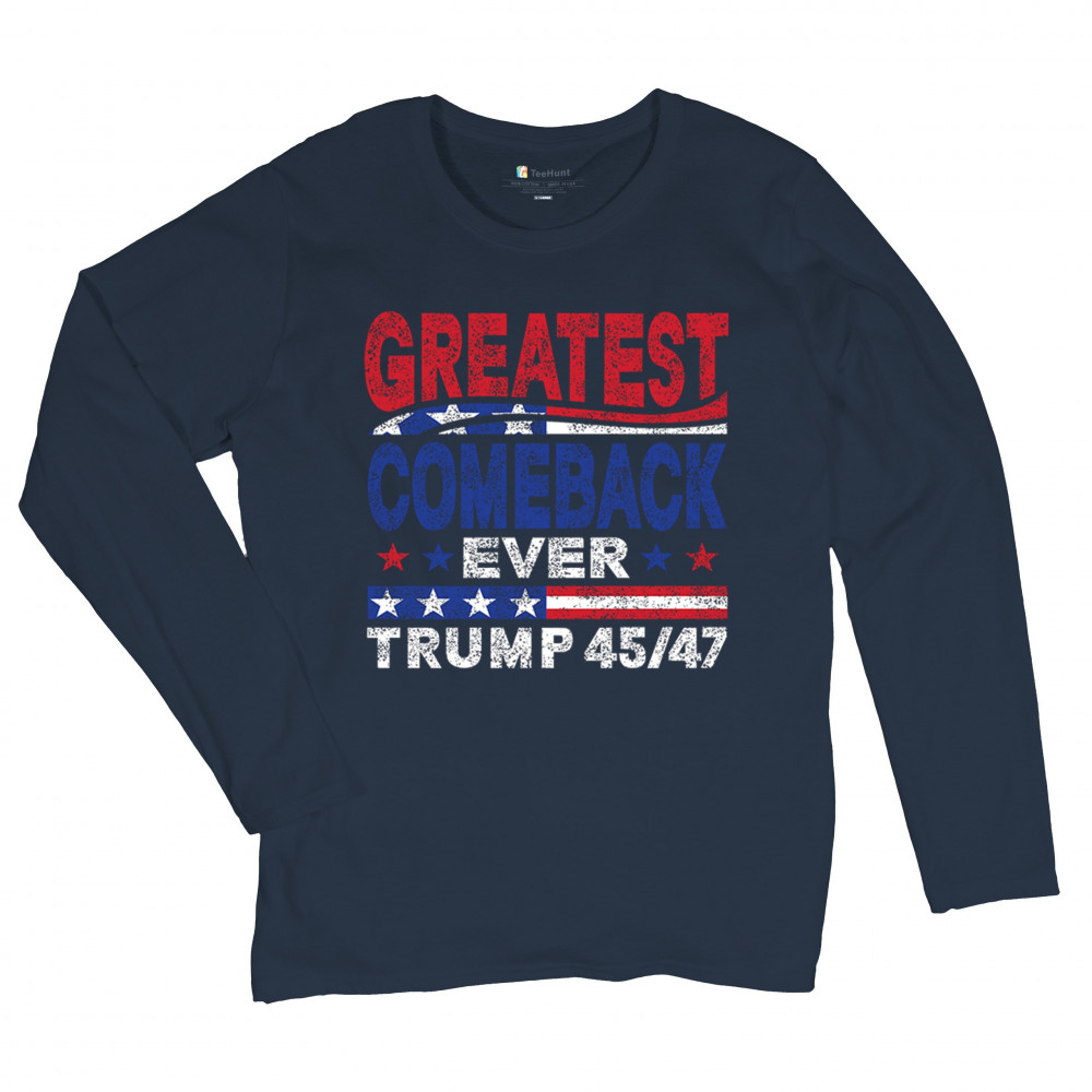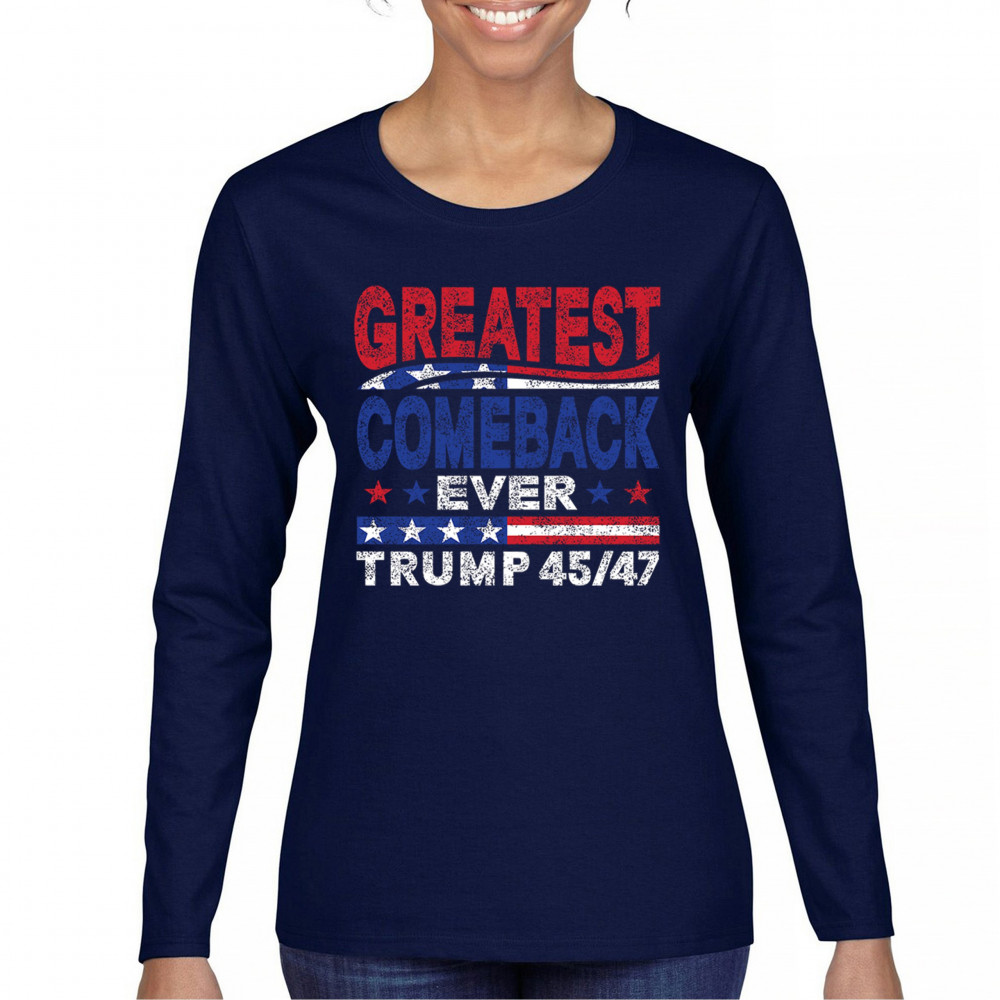 The "Greatest Comeback Ever" design is a tribute to resilience, patriotism, and the fight for American values. Featuring bold patriotic colors and a slogan that embodies the spirit of victory, this design is perfect for Trump supporters and conservatives who believe in never surrendering. Celebrate the leadership of Donald J. Trump as the 45th and 47th president and join the movement for America's future.