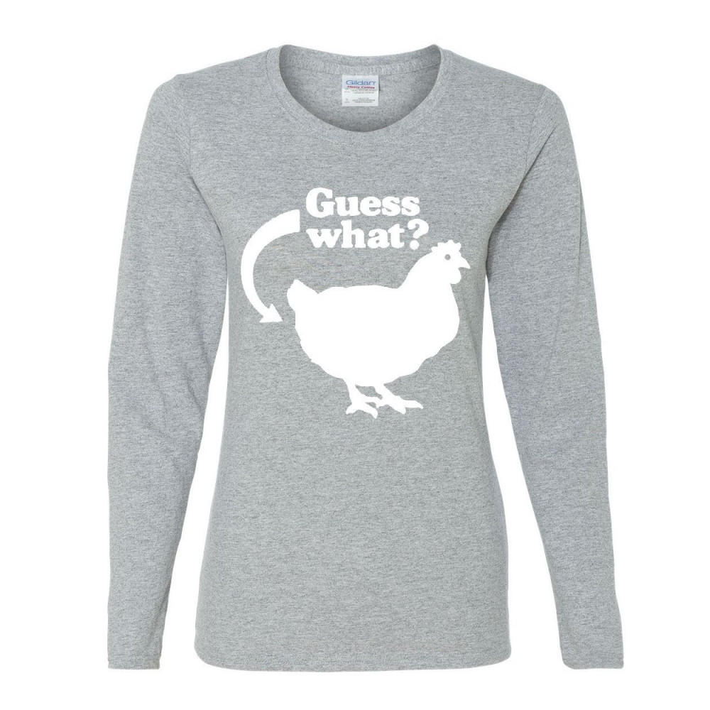 GUESS WHAT? CHICKEN BUTT women's long sleeve tee funny ironic offensive humor gray