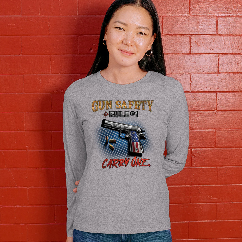 Show your commitment to gun safety and constitutional rights with our 'Carry One' graphic tee. Perfect for patriots, veterans, and advocates of liberty.