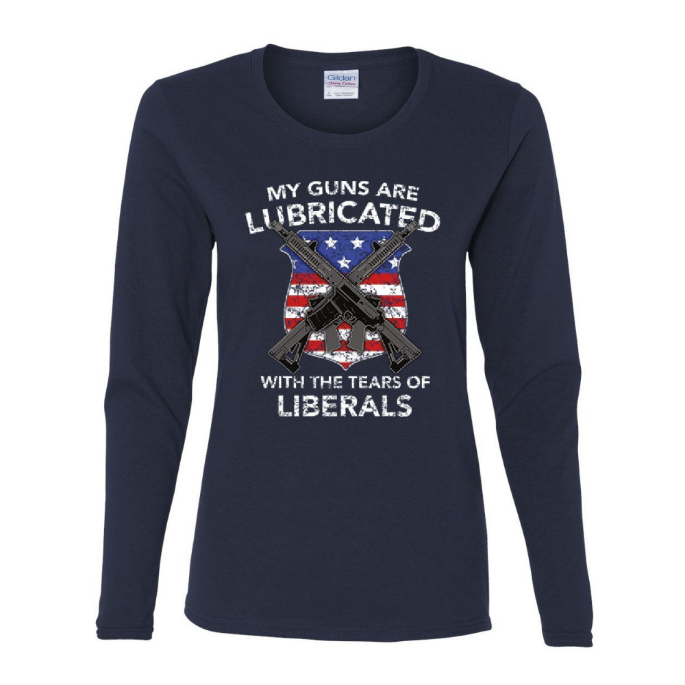 MY GUNS LUBRICATED WITH THE TEARS OF LIBERALS guns lubricated with tears of liberals women's long sleeve tee 2nd amendment navy blue