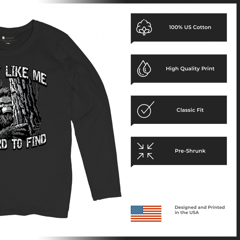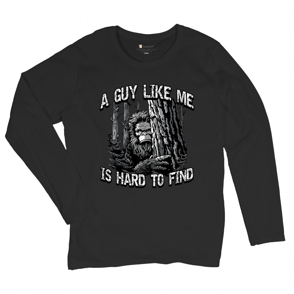 GUY LIKE ME IS HARD TO FIND women's long sleeve t-shirt bigfoot sasquatch has black