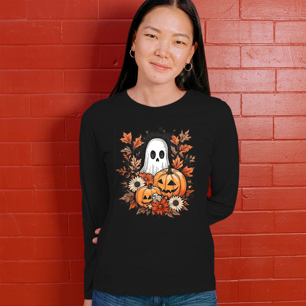 This pumpkin and ghost-themed design is perfect for Halloween and fall. Embrace the spooky season in style with this festive print!