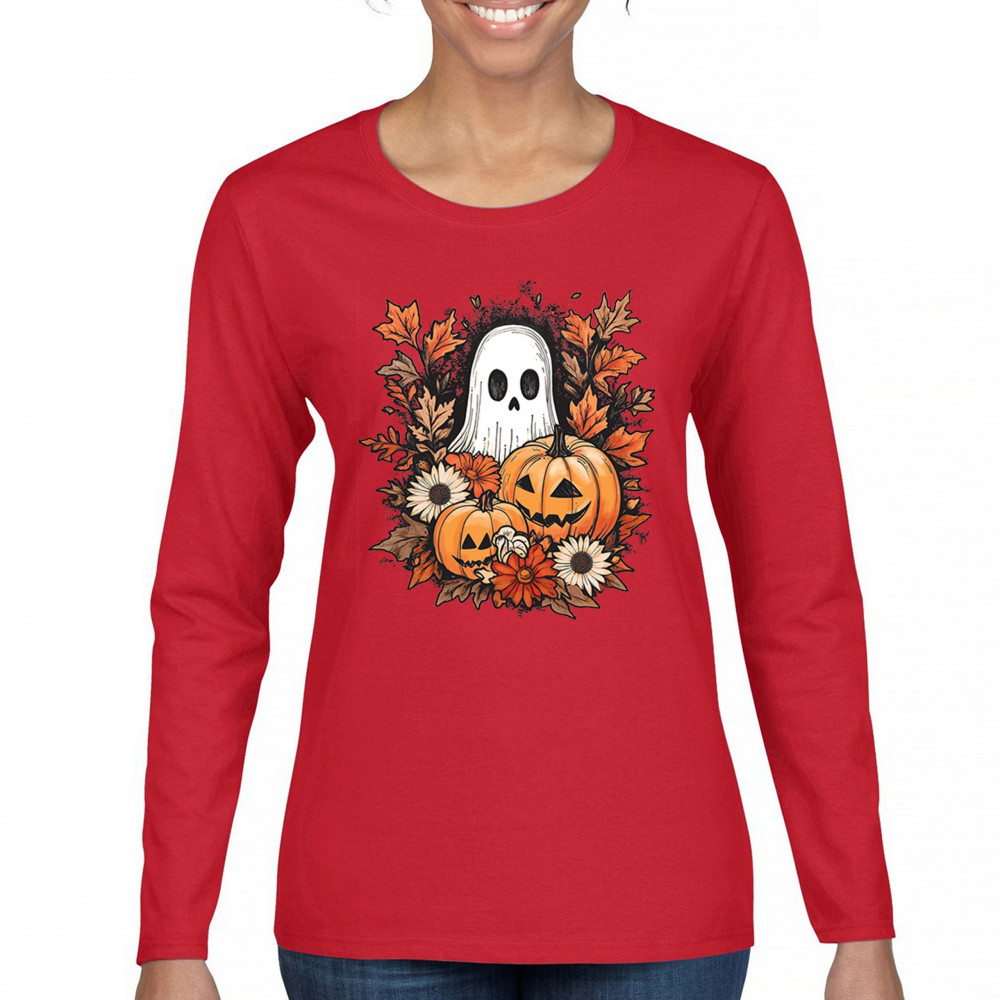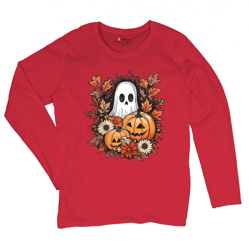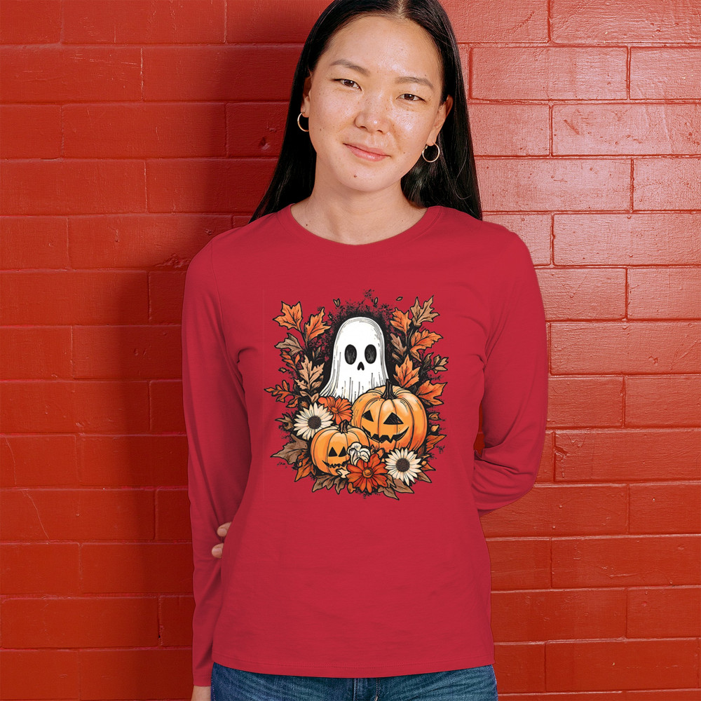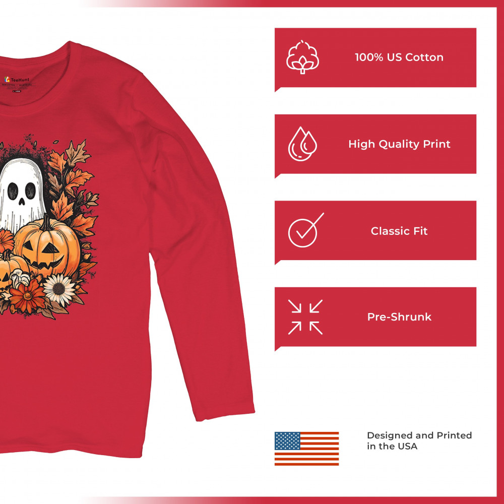 Celebrate the arrival of fall with this delightful design featuring pumpkins, autumn leaves, flowers, and a cute ghost. It's the perfect addition to your Halloween and autumn-themed wardrobe, or even as decor to welcome the fall spirit into your home. The combination of spooky and cozy elements creates a festive yet warm vibe, ideal for Halloween parties, pumpkin patch trips, or just enjoying the beautiful fall season.