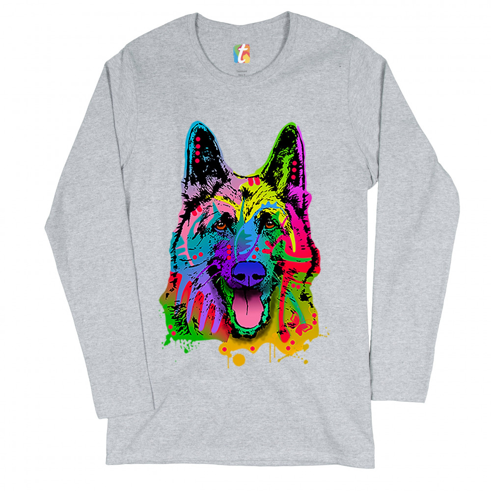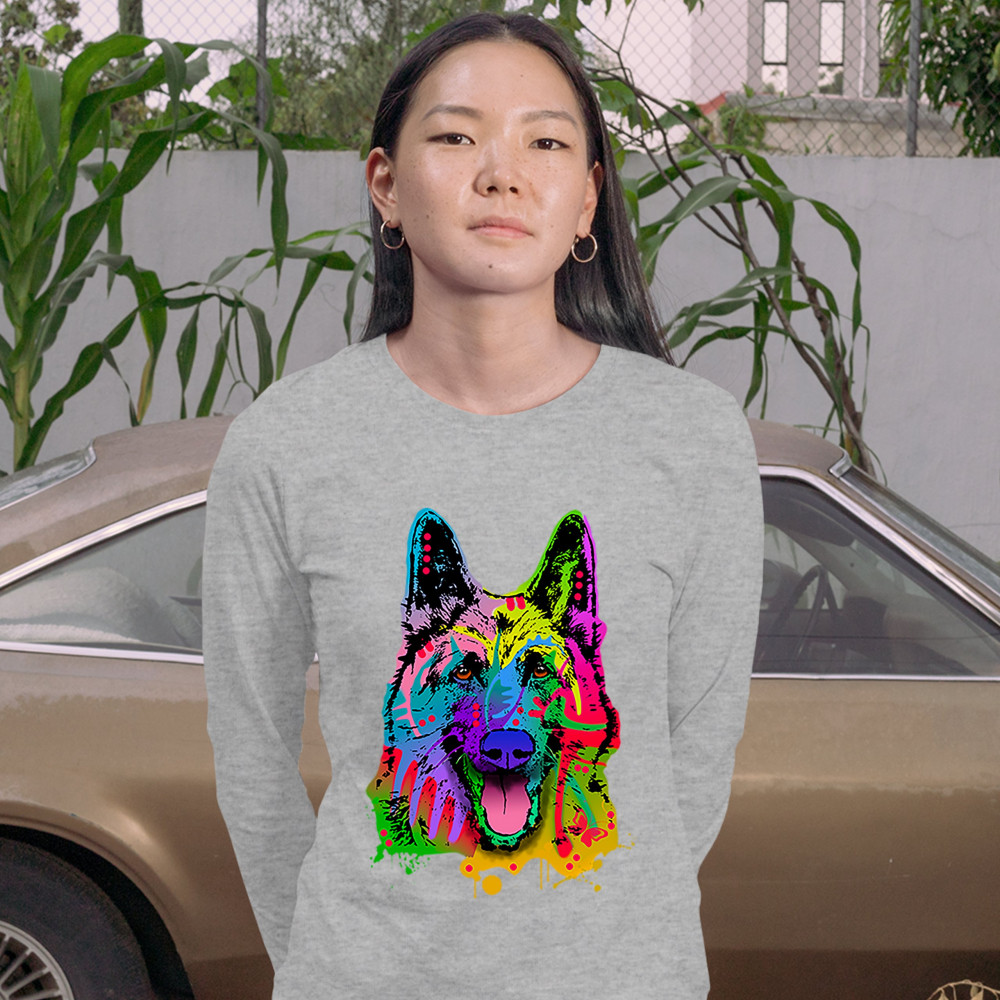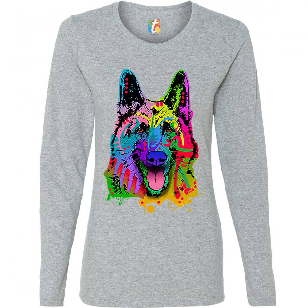 HAPPY GERMAN SHEPHERD women's long sleeve t-shirt andy maxx i love my dog gray