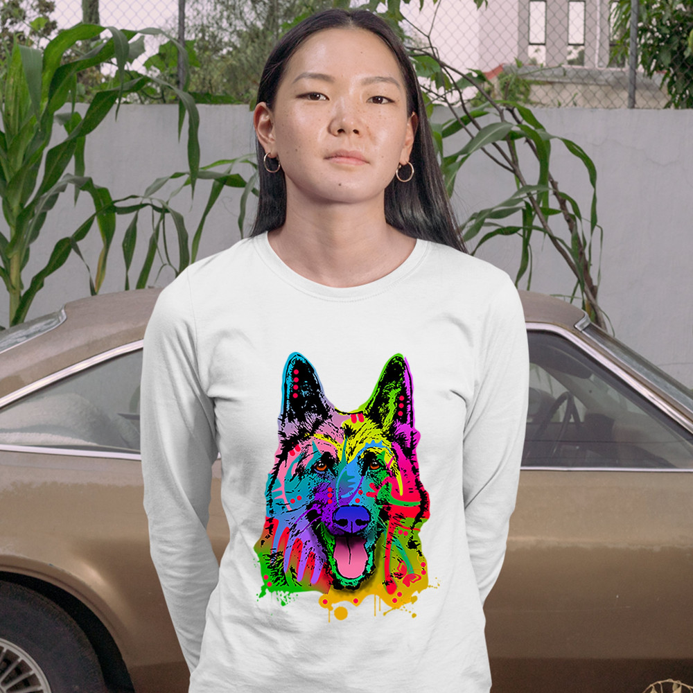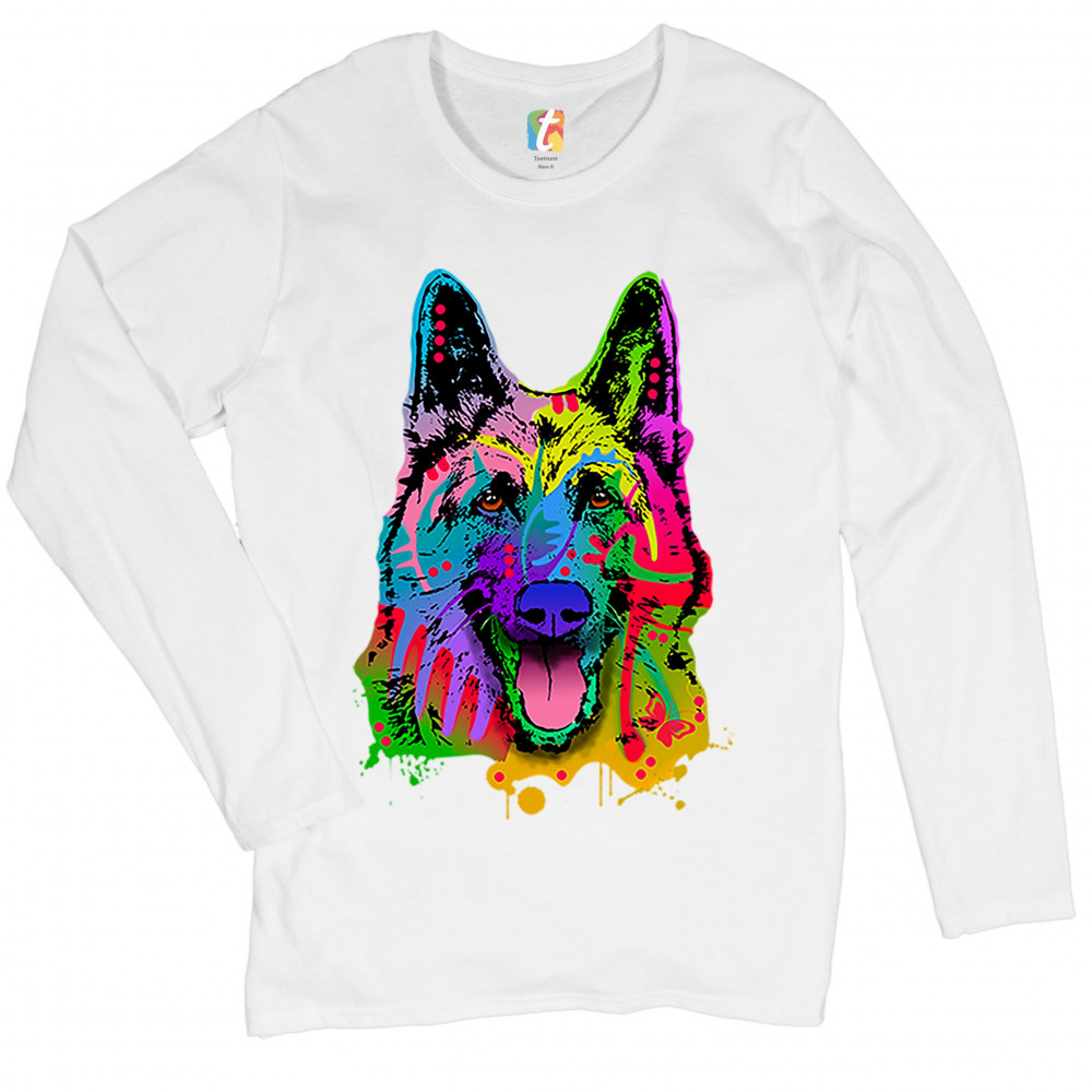 HAPPY GERMAN SHEPHERD women's long sleeve t-shirt andy maxx i love my dog white