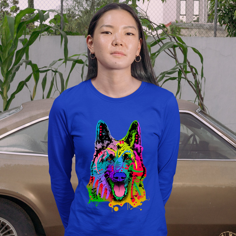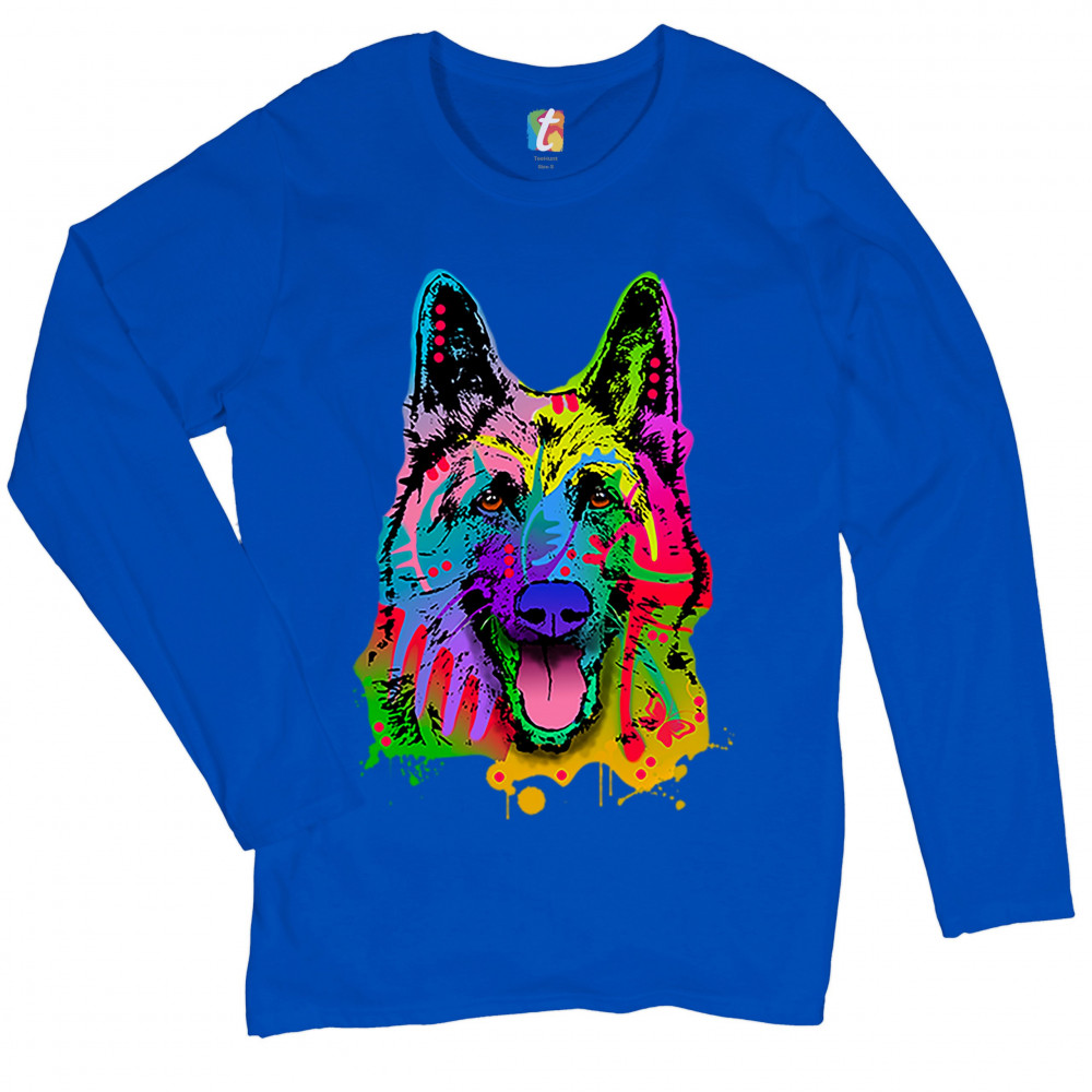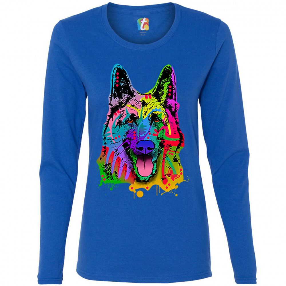 HAPPY GERMAN SHEPHERD women's long sleeve t-shirt andy maxx i love my dog royal blue