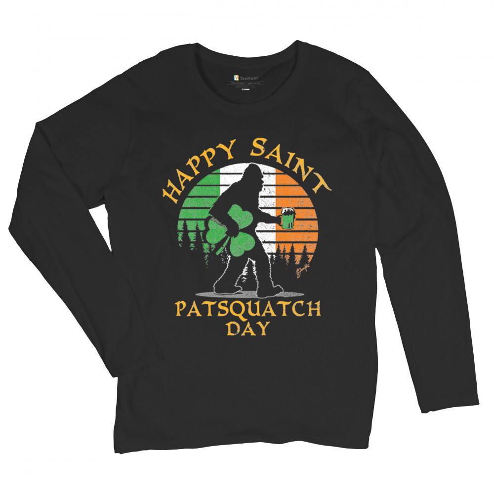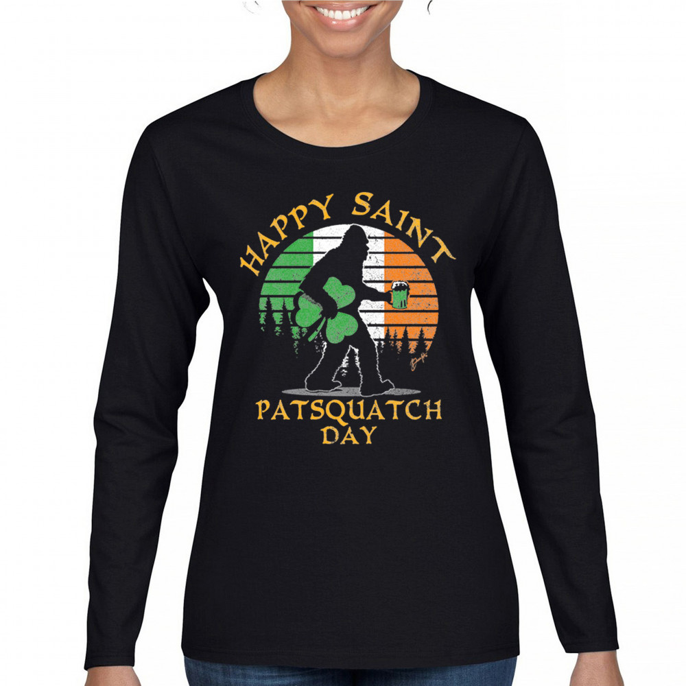 HAPPY SAINT PATSQUATCH DAY women's long sleeve t-shirt st. patrick's big foot black