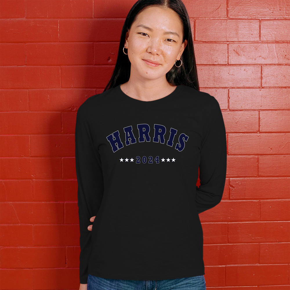 Stand with Kamala Harris and show your support for her 2024 presidential campaign with this striking design. Ideal for anti-Trump supporters, liberals, and democrats, this design features "Harris 2024" in bold lettering. Wear it to rallies, campaign events, or in your daily life to make a strong political statement. This design celebrates the historic possibility of electing the first female president and highlights the importance of representation for black Americans, Hispanic Americans, LGBTQ, and other minority communities. Make your voice heard with this powerful symbol.