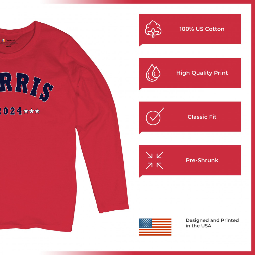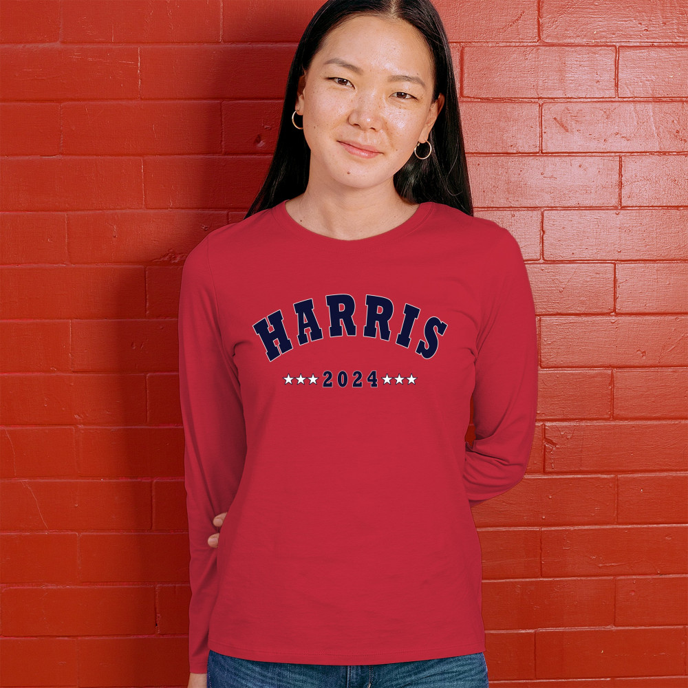 Stand with Kamala Harris and show your support for her 2024 presidential campaign with this striking design. Ideal for anti-Trump supporters, liberals, and democrats, this design features "Harris 2024" in bold lettering. Wear it to rallies, campaign events, or in your daily life to make a strong political statement. This design celebrates the historic possibility of electing the first female president and highlights the importance of representation for black Americans, Hispanic Americans, LGBTQ, and other minority communities. Make your voice heard with this powerful symbol.