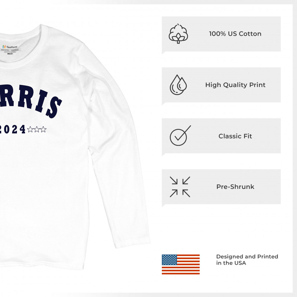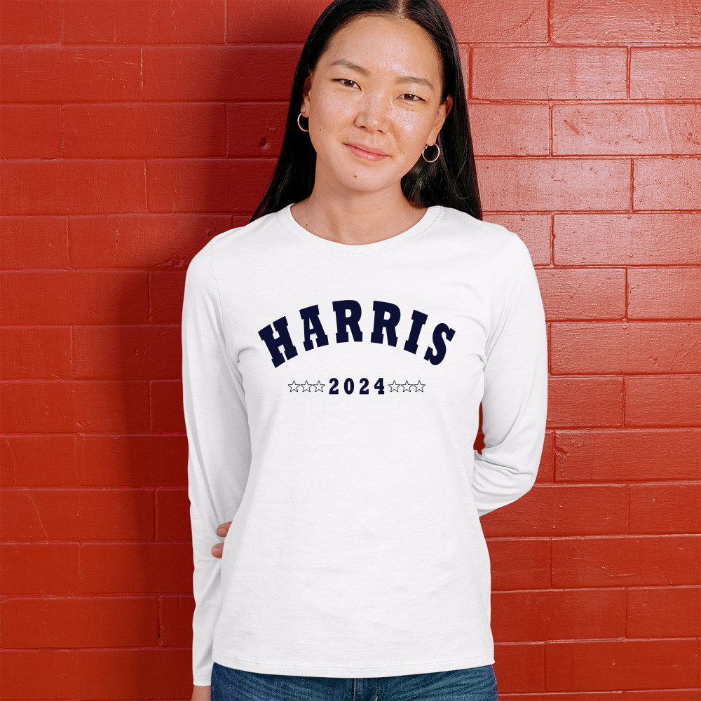 Stand with Kamala Harris and show your support for her 2024 presidential campaign with this striking design. Ideal for anti-Trump supporters, liberals, and democrats, this design features "Harris 2024" in bold lettering. Wear it to rallies, campaign events, or in your daily life to make a strong political statement. This design celebrates the historic possibility of electing the first female president and highlights the importance of representation for black Americans, Hispanic Americans, LGBTQ, and other minority communities. Make your voice heard with this powerful symbol.