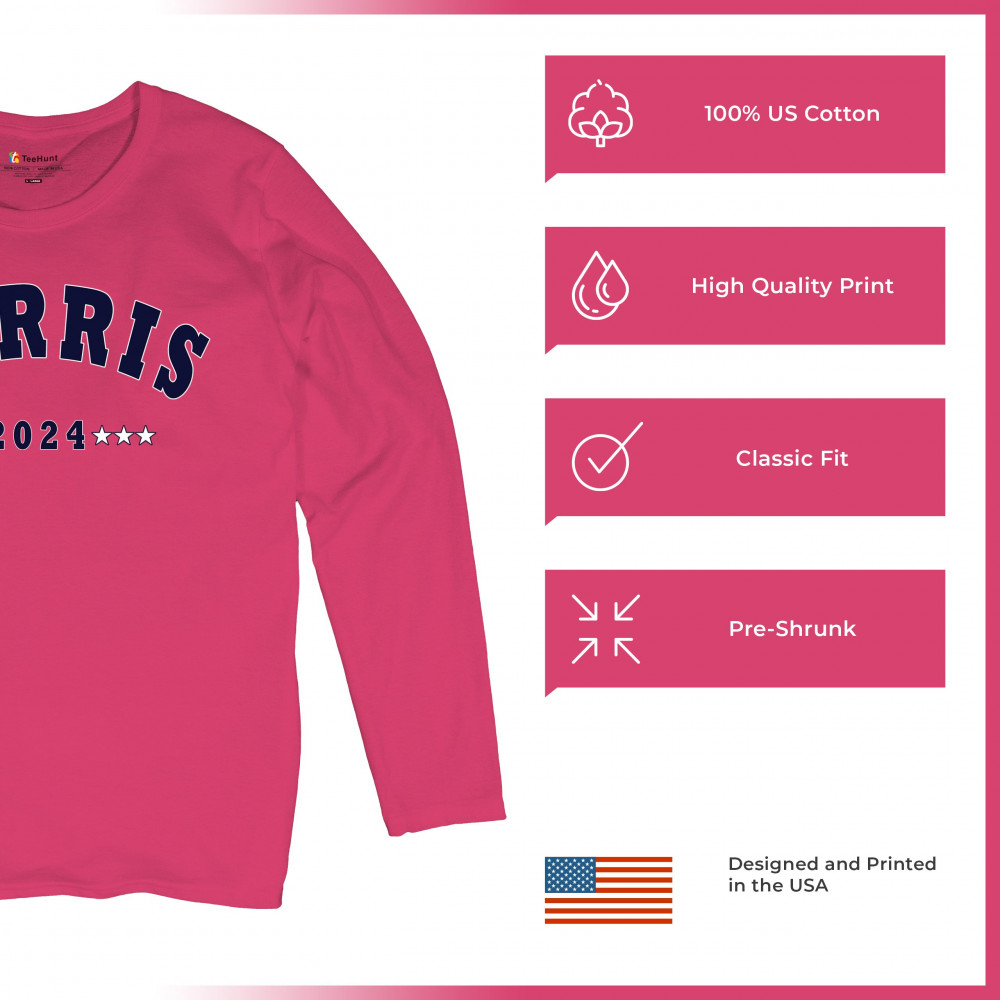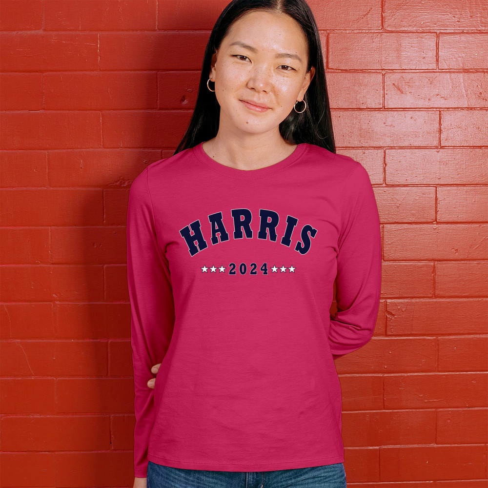 Stand with Kamala Harris and show your support for her 2024 presidential campaign with this striking design. Ideal for anti-Trump supporters, liberals, and democrats, this design features "Harris 2024" in bold lettering. Wear it to rallies, campaign events, or in your daily life to make a strong political statement. This design celebrates the historic possibility of electing the first female president and highlights the importance of representation for black Americans, Hispanic Americans, LGBTQ, and other minority communities. Make your voice heard with this powerful symbol.