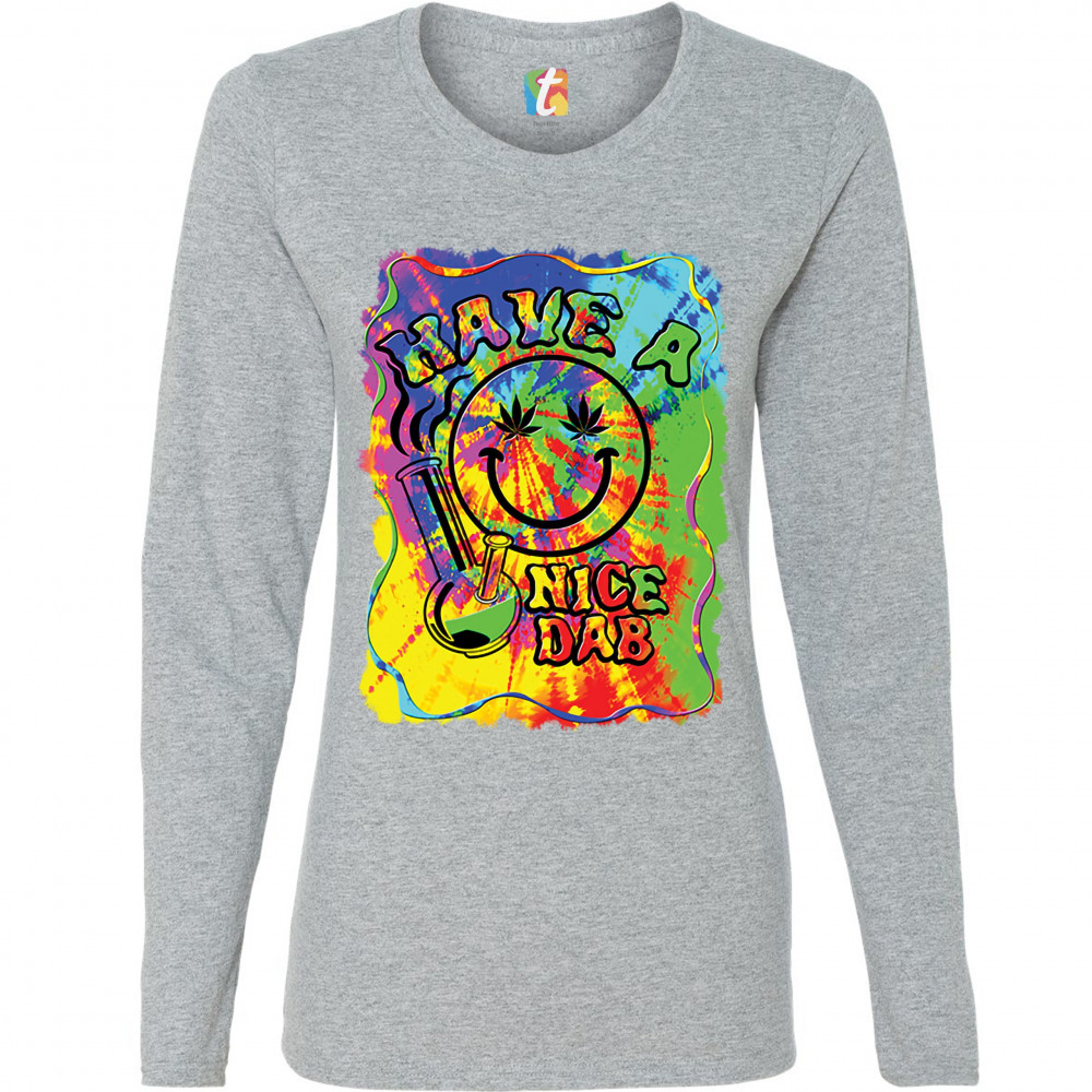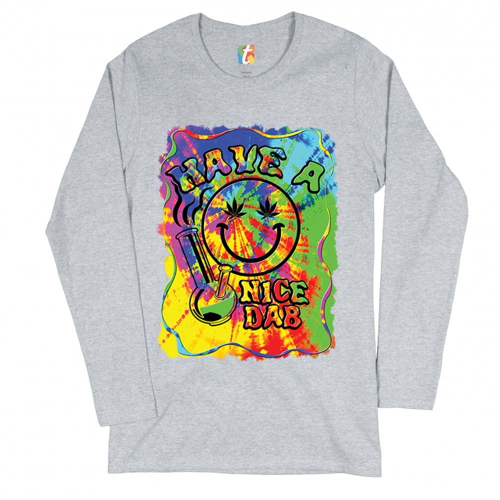 HAVE A NICE DAB women's long sleeve t-shirt 420 happy face hitting a weed bong gray