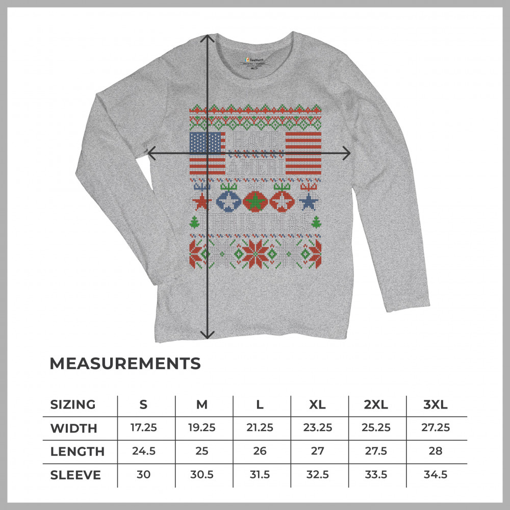 HAVE AMERI CHRISTMAS women's long sleeve t-shirt american flag ugly sweater gray